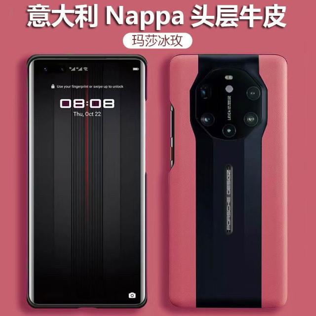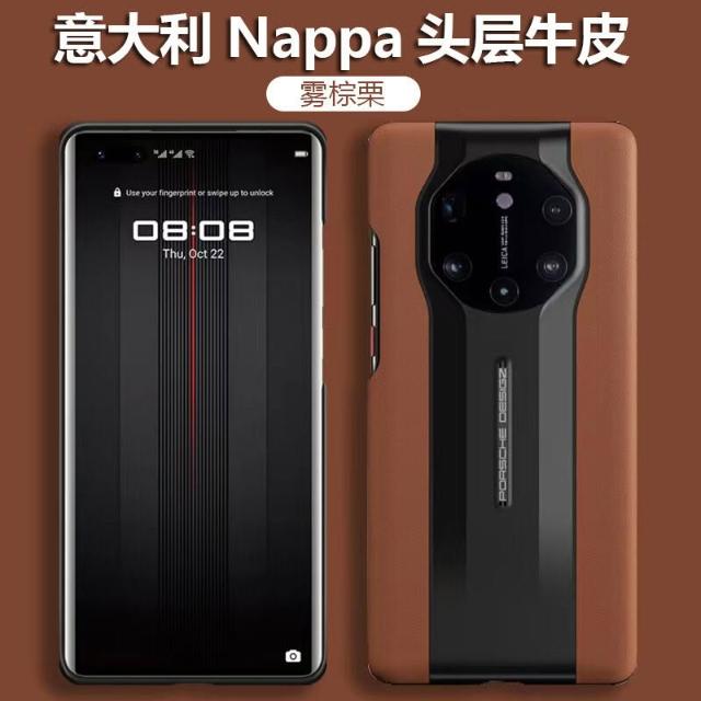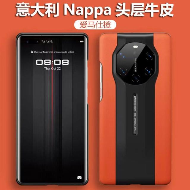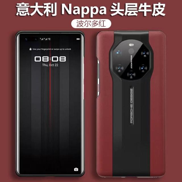 適用華為Mate40RS保時捷設計超跑真皮手機殼頭層牛皮保護套男女款
