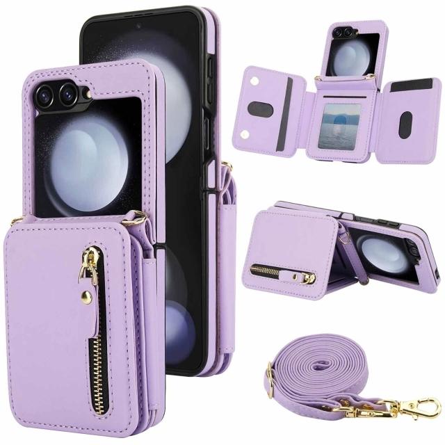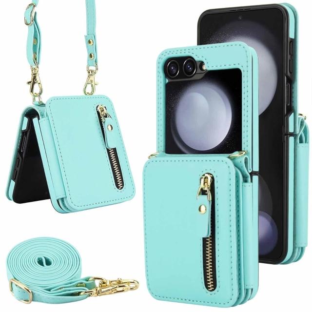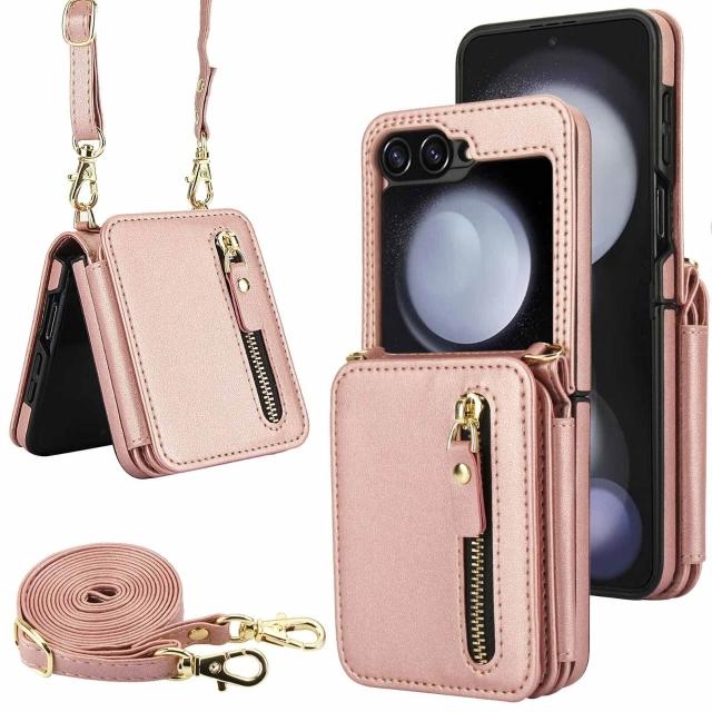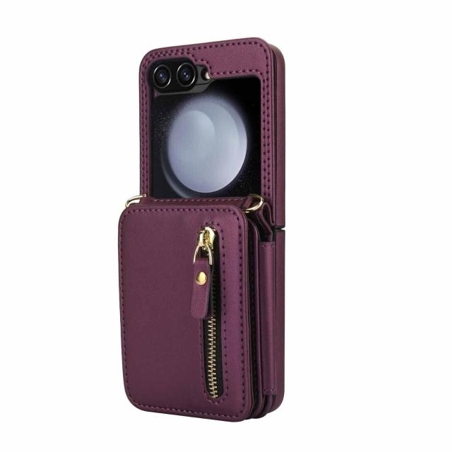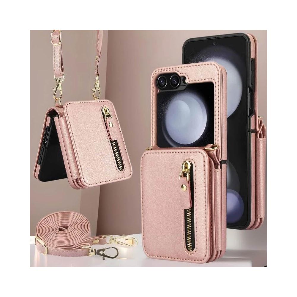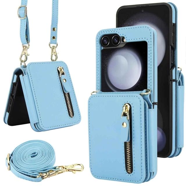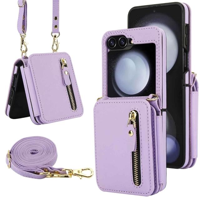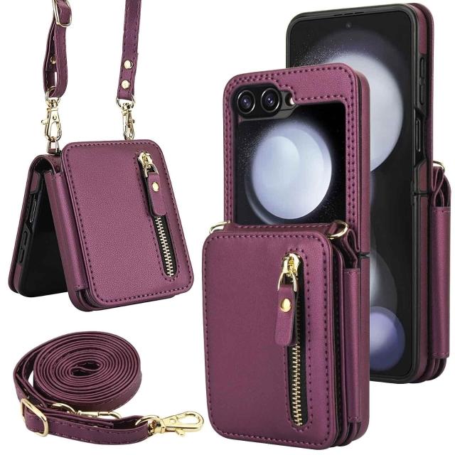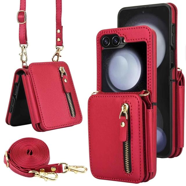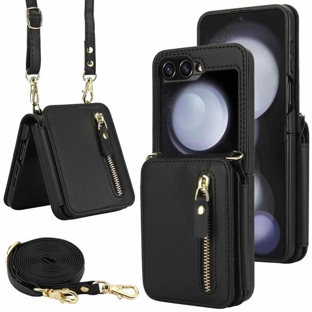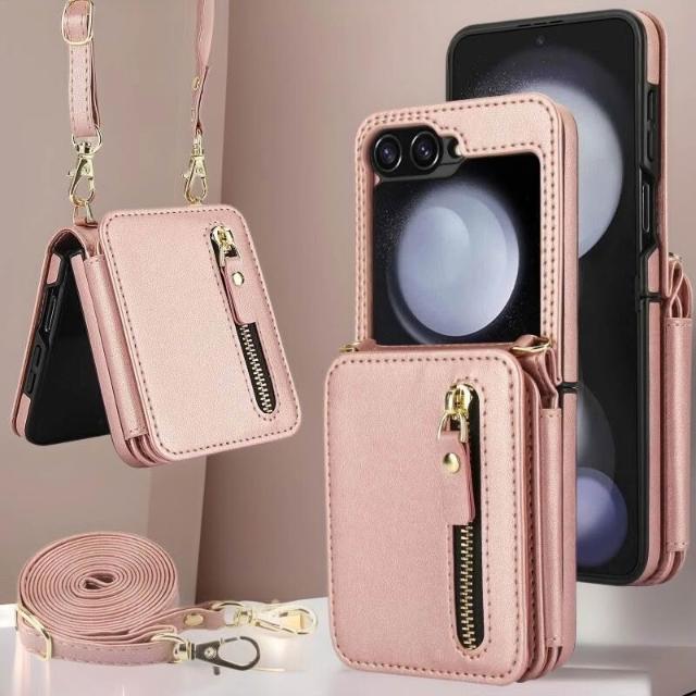 適用三星Z Flip3/4/5/6拉鏈多卡包手機殼7女斜挎翻蓋防盜刷保護套