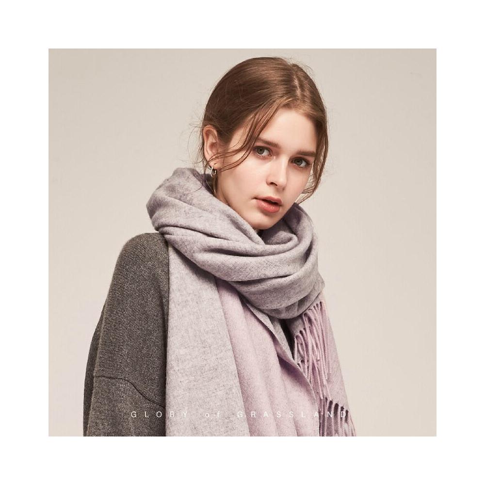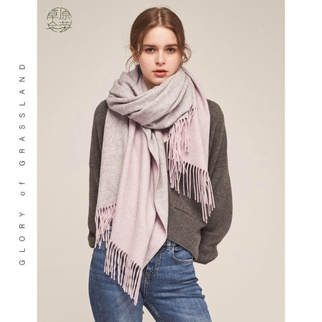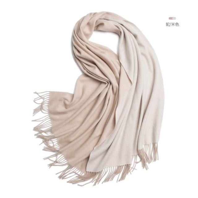 圍巾 絲巾 圍脖 披肩 內蒙古廠家直供羊毛女士雙面圍巾秋冬拼色加大披肩保暖圍脖兩用