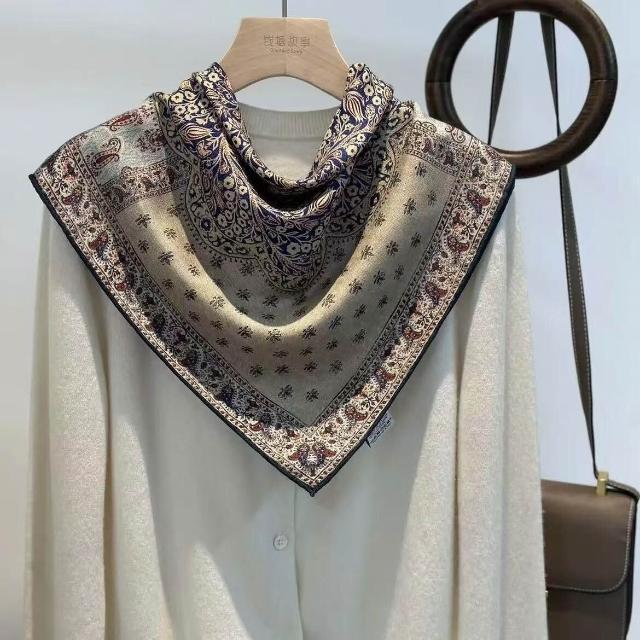 圍巾 絲巾 圍脖 披肩 桑蠶絲真絲羊毛雅致古典65方巾女高端秋冬季百搭絲巾絲毛圍巾