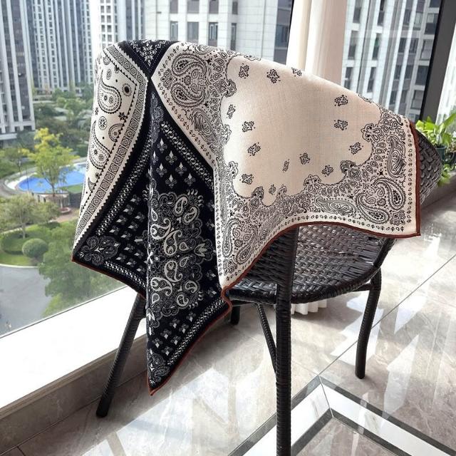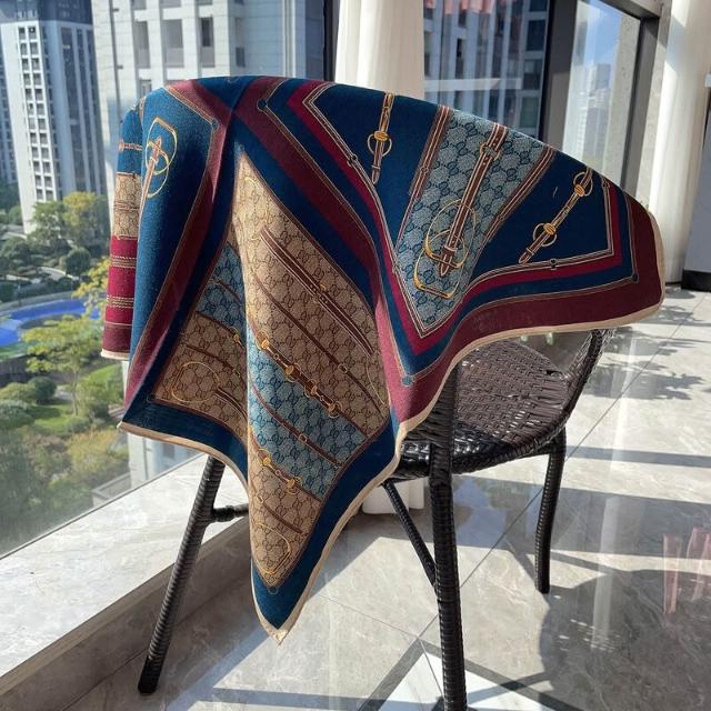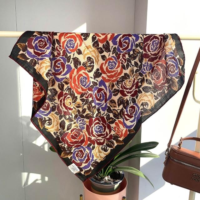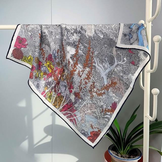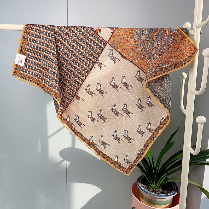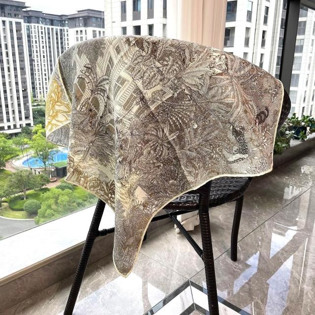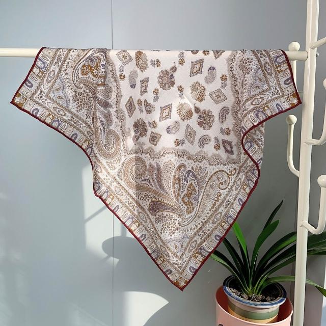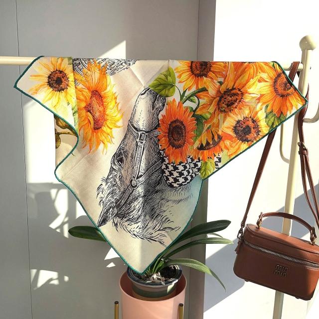 圍巾 絲巾 圍脖 披肩 米色白金叢林福寶雙面印花小絲毛方巾65cm中方巾真絲羊毛圍巾護脖