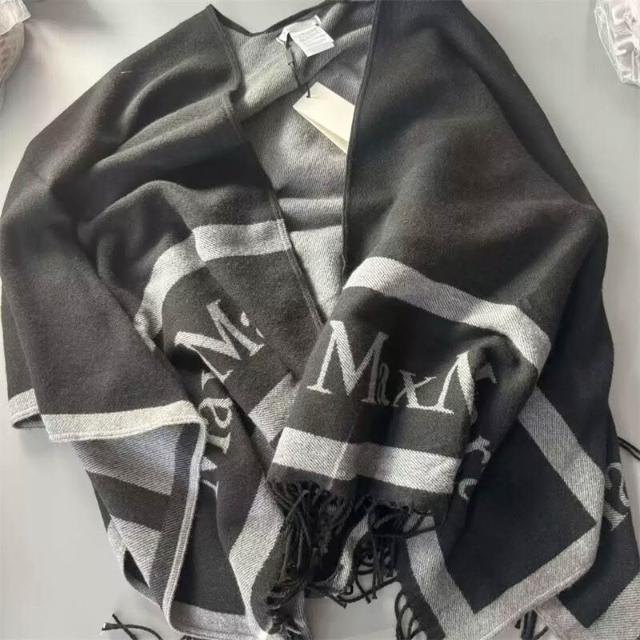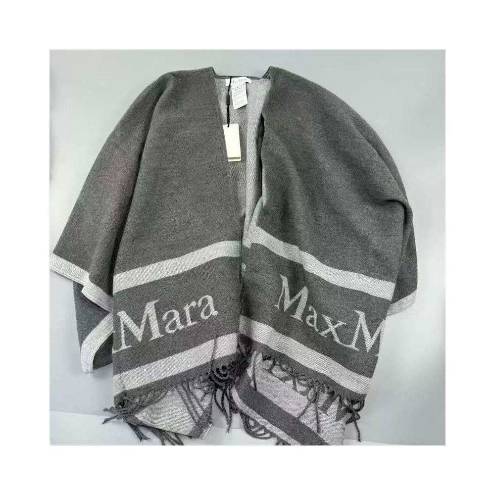 圍巾 絲巾 圍脖 披肩 意大利maxmara披肩精紡雙面羊毛羊絨鬥篷加厚女士流蘇披肩外搭