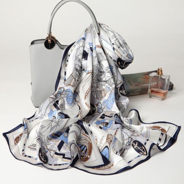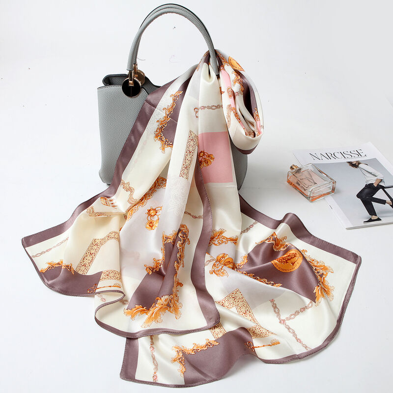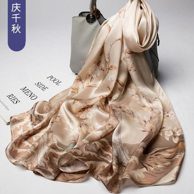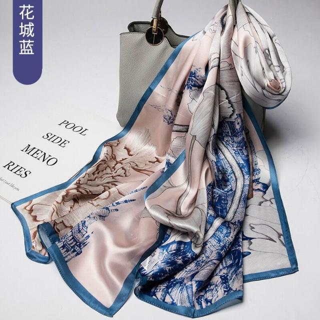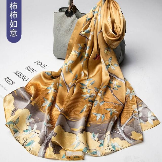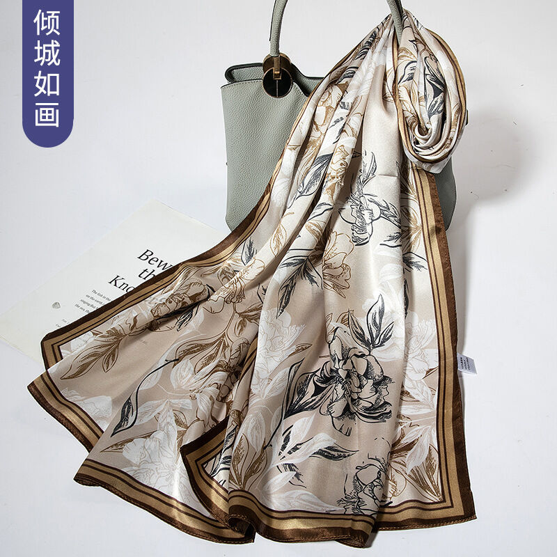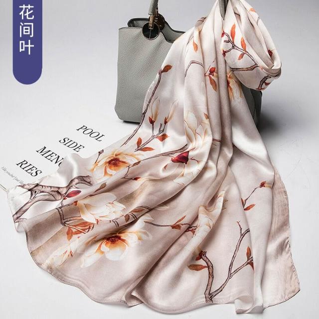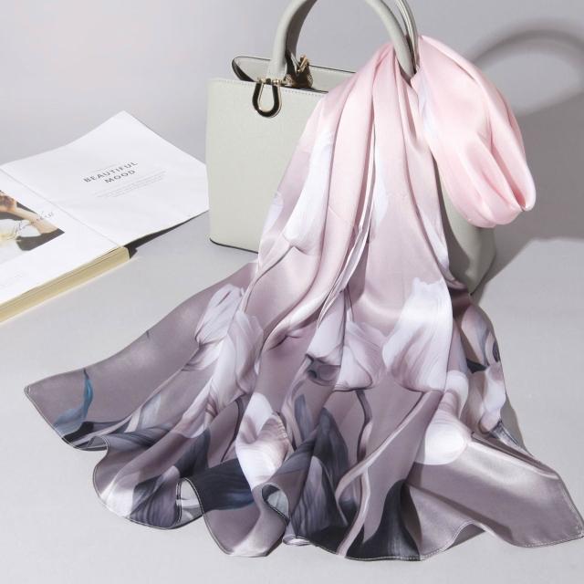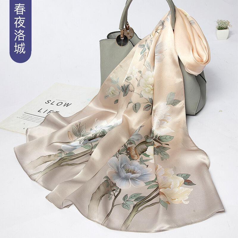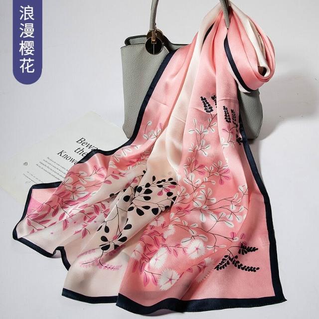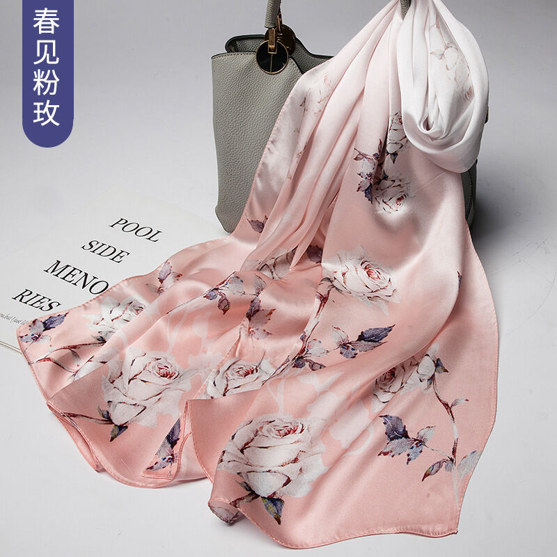 圍巾 絲巾 圍脖 披肩 杭州絲綢真絲絲巾女士新款100%純桑蠶絲圍巾緞面披肩廠家拿貨