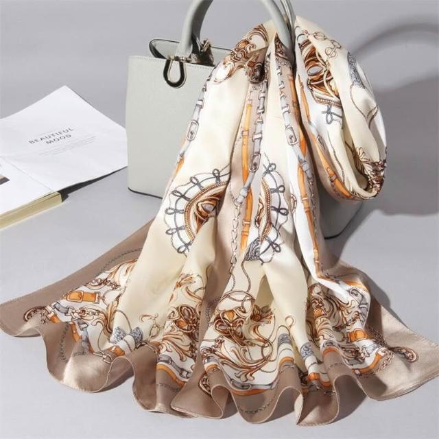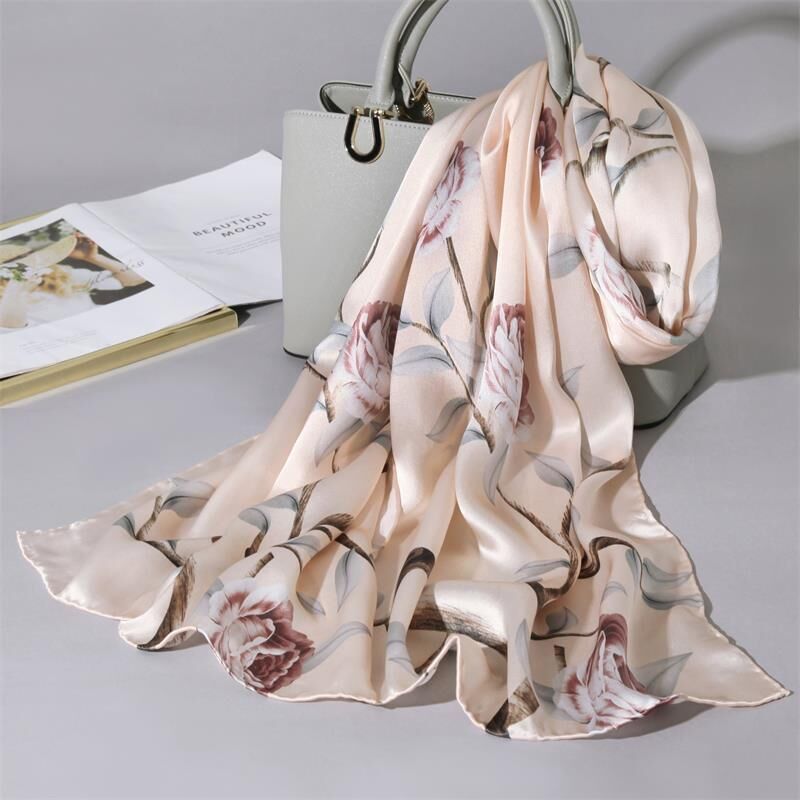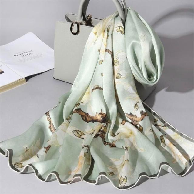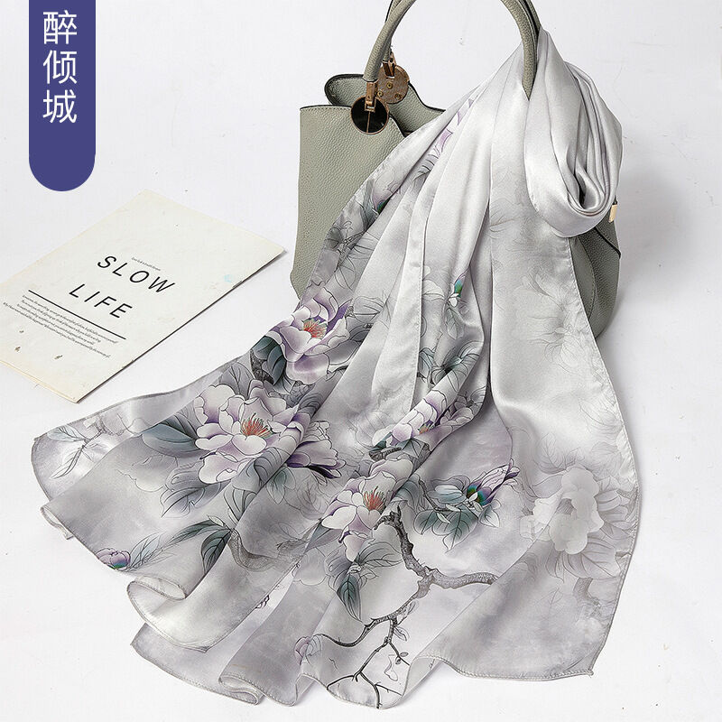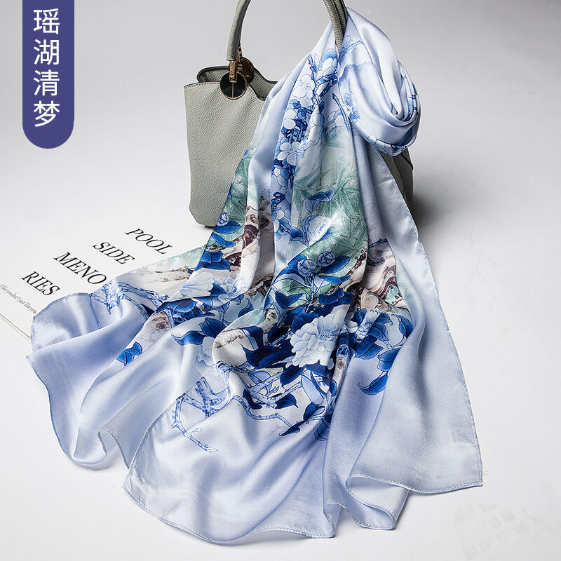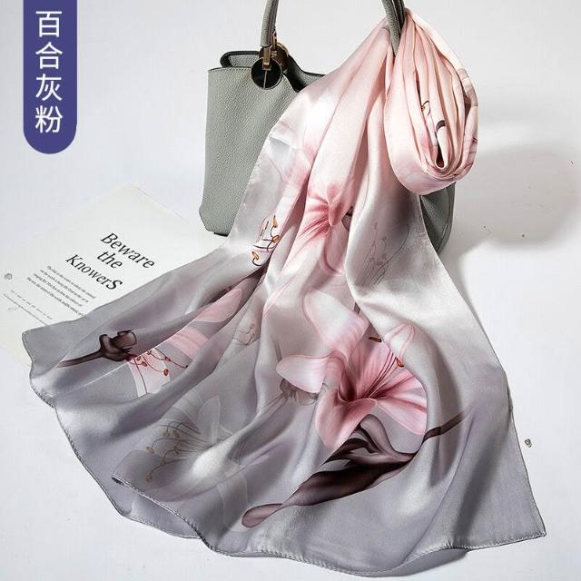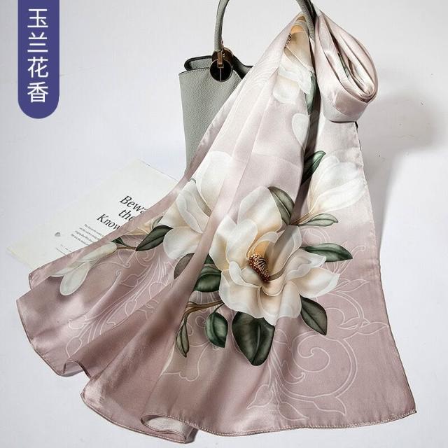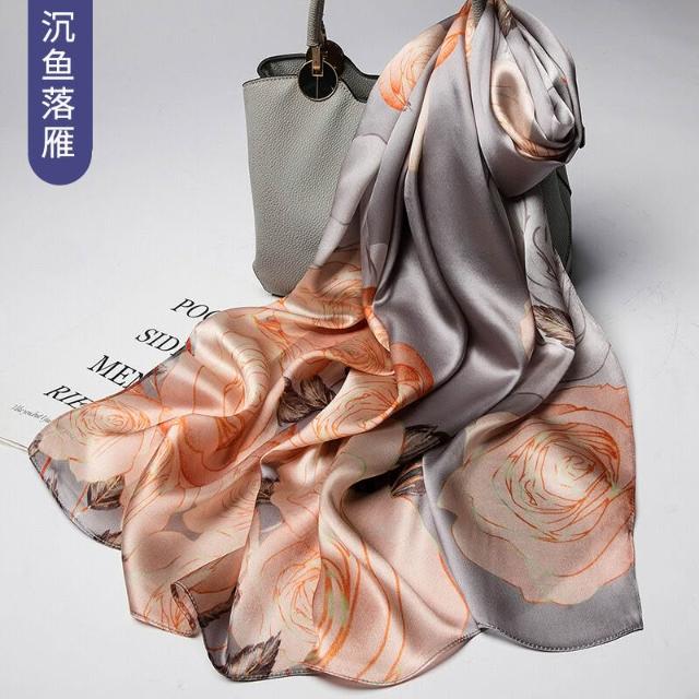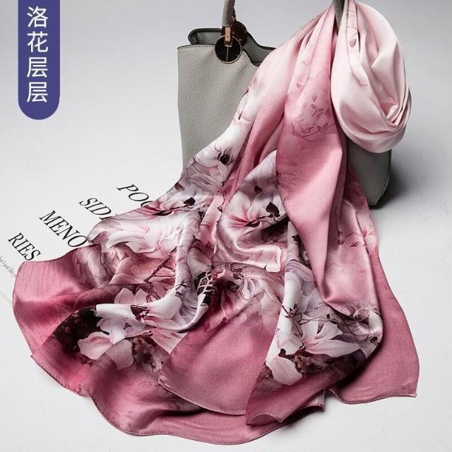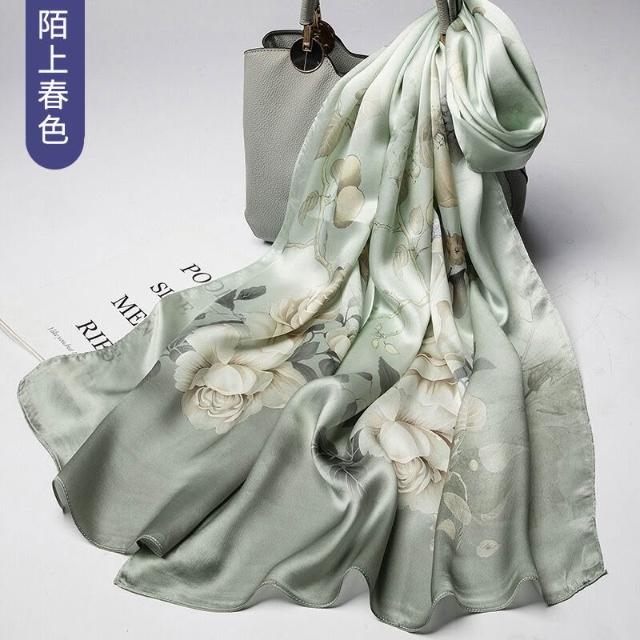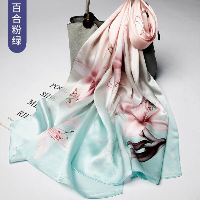 圍巾 絲巾 圍脖 披肩 杭州絲綢真絲絲巾女士新款100%純桑蠶絲圍巾緞面披肩廠家拿貨