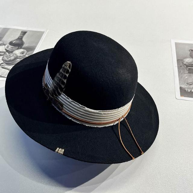 帽子 成人帽 熱銷男女黑色純羊毛禮帽羽毛裝飾復古羊毛禮帽