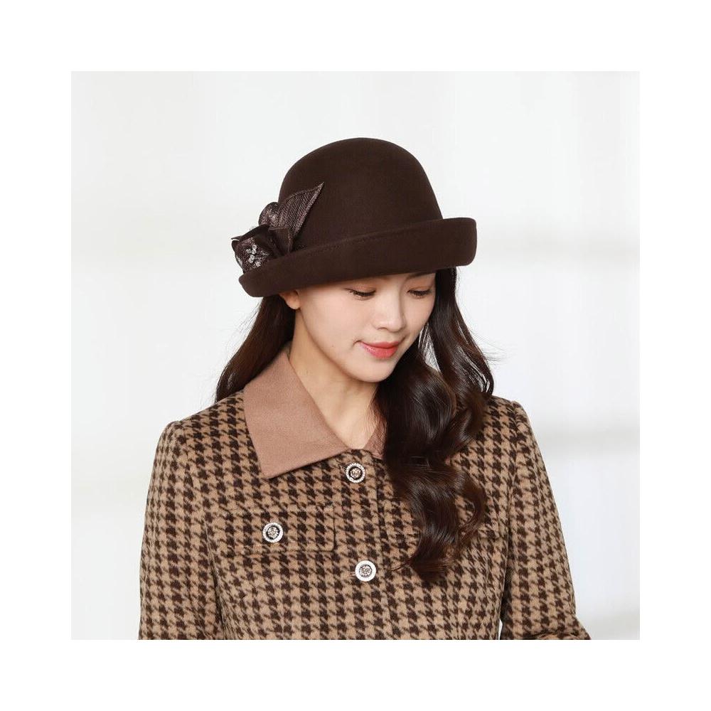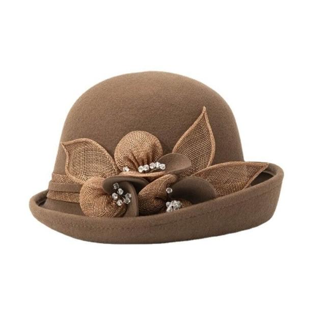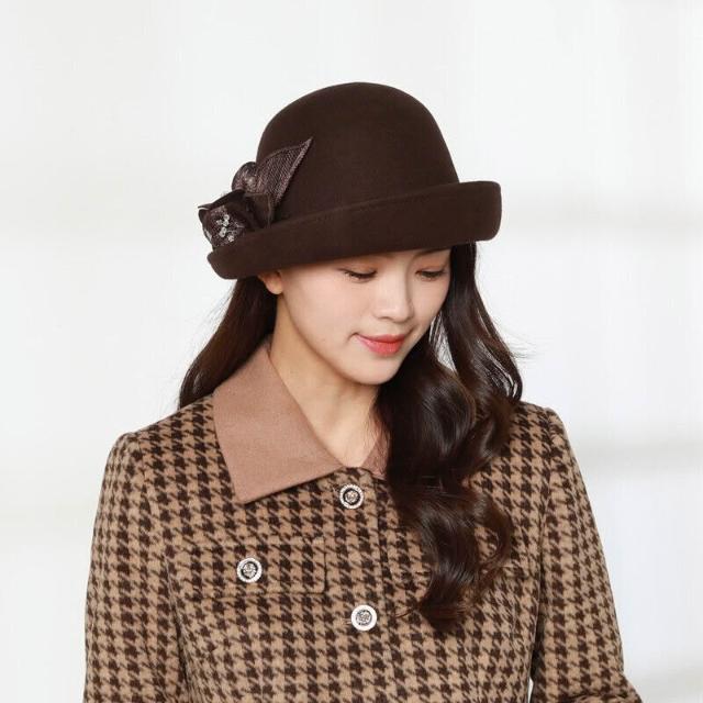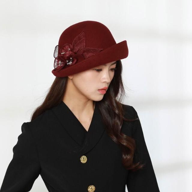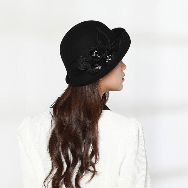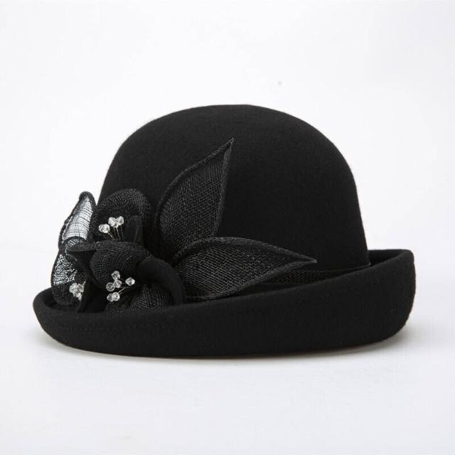 帽子 成人帽 華巧 秋冬新款復古卷邊手工菲律賓花朵羊毛呢圓頂禮帽 氈帽女士