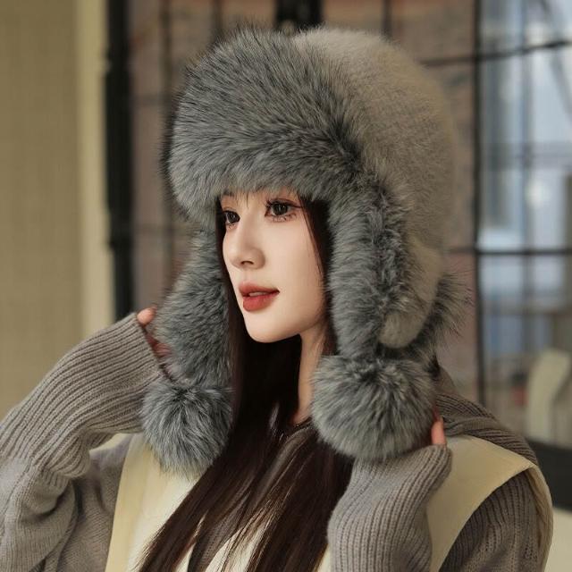 帽子 成人帽 羊毛護耳皮草雷鋒帽女冬季加厚保暖貂皮帽子韓版百搭兔毛可愛