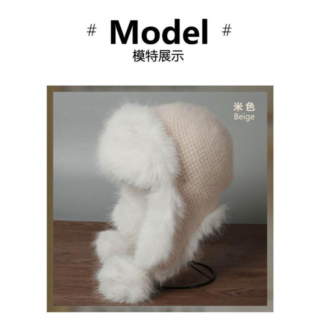 帽子 成人帽 羊毛護耳皮草雷鋒帽女冬季加厚保暖貂皮帽子韓版百搭兔毛可愛