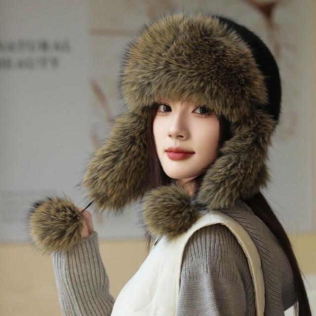 帽子 成人帽 羊毛護耳皮草雷鋒帽女冬季加厚保暖貂皮帽子韓版百搭兔毛可愛