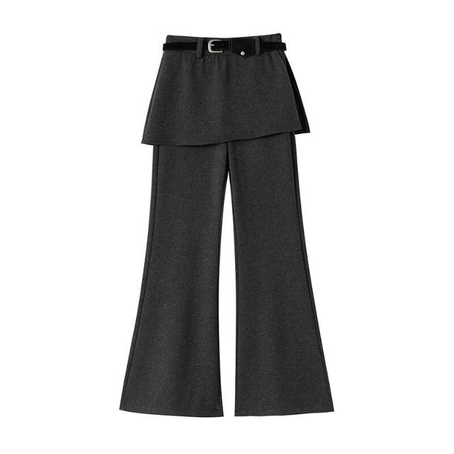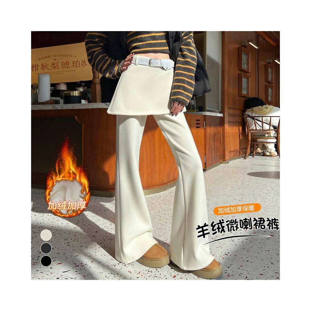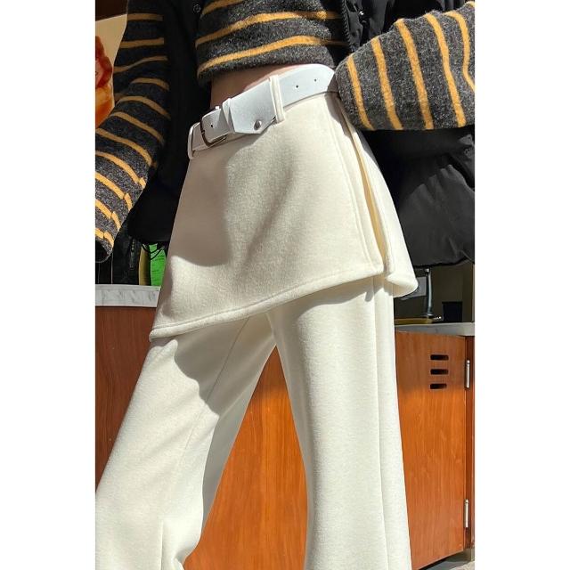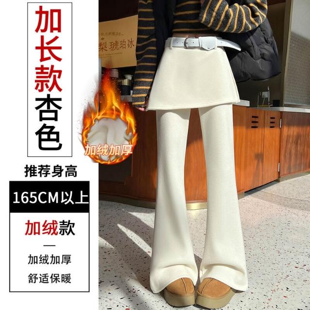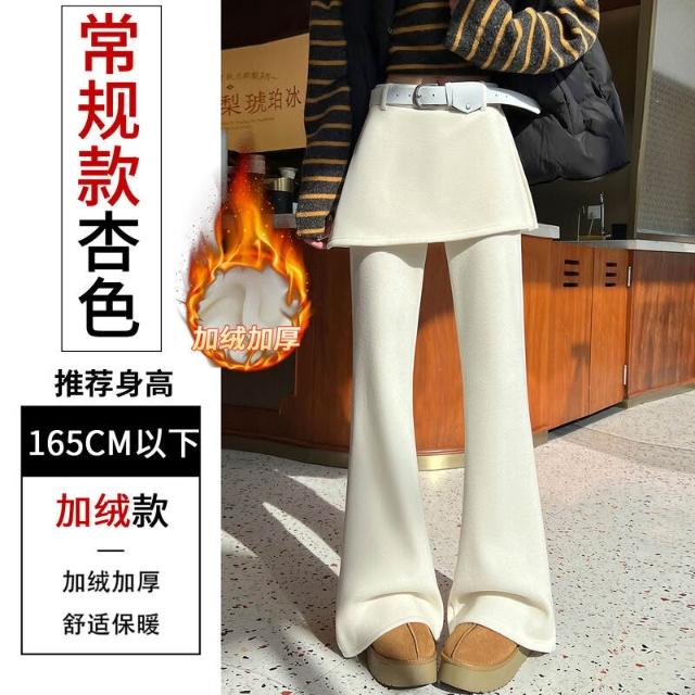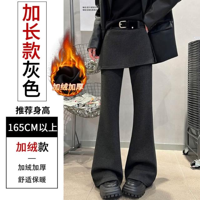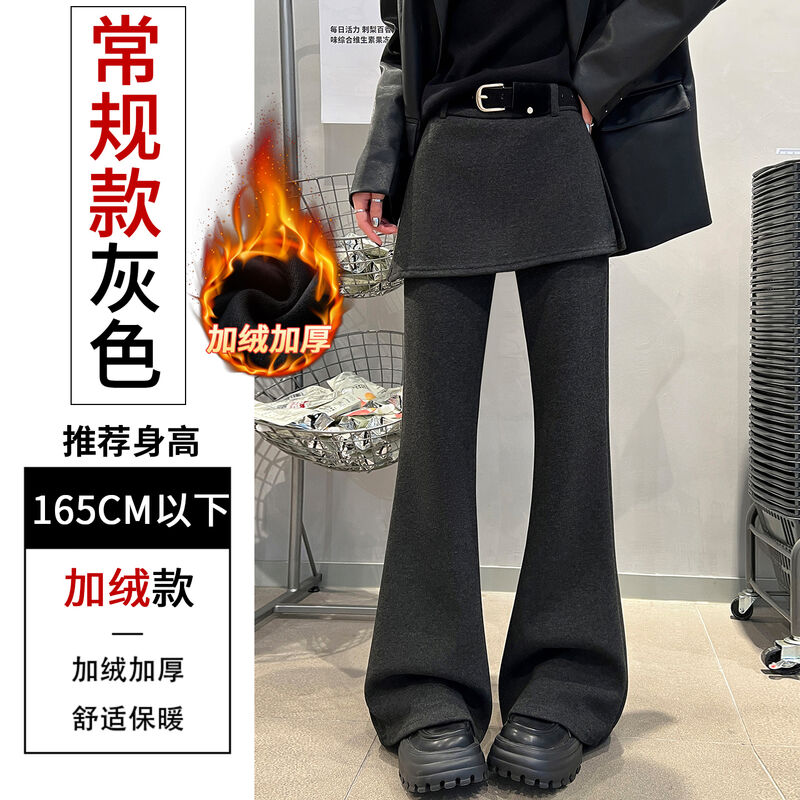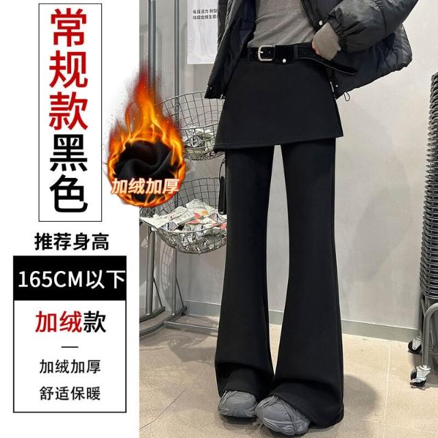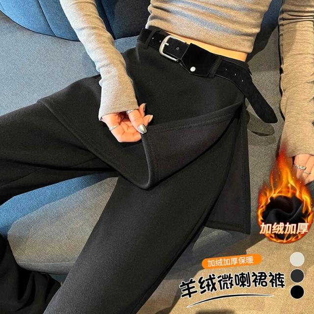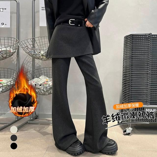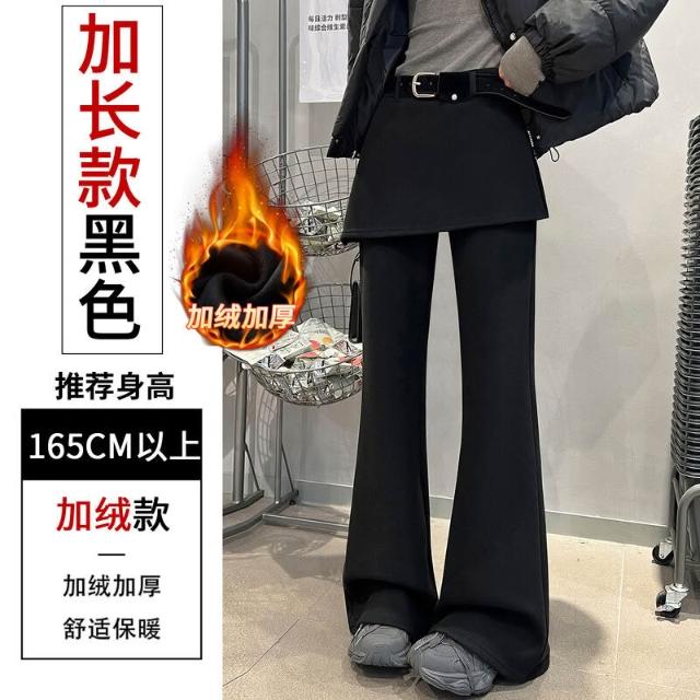 加絨羊絨假兩件屁簾微喇褲女2025冬季高腰顯瘦休閑拖地喇叭褲