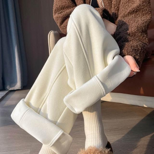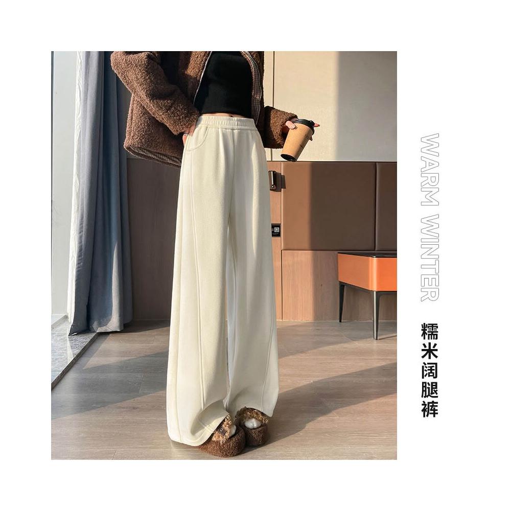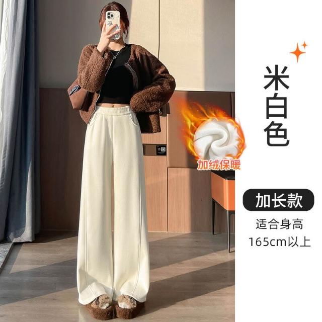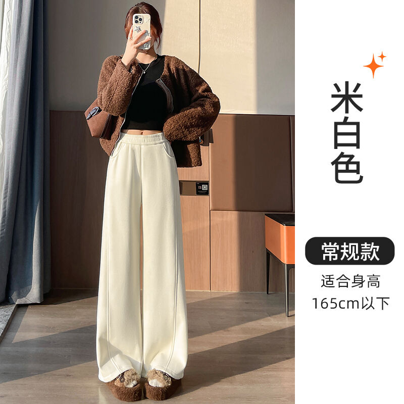 白色加絨羊絨闊腿褲子女秋冬高腰垂感糯米褲衛褲醋酸彎刀褲直筒褲