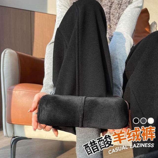 白色加絨羊絨闊腿褲子女秋冬高腰垂感糯米褲衛褲醋酸彎刀褲直筒褲