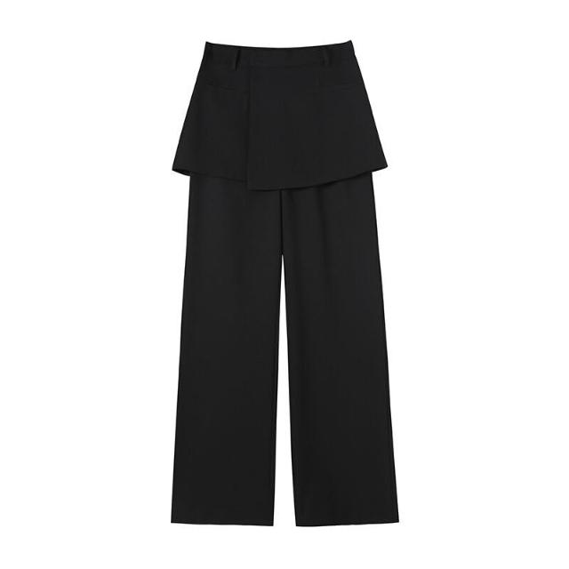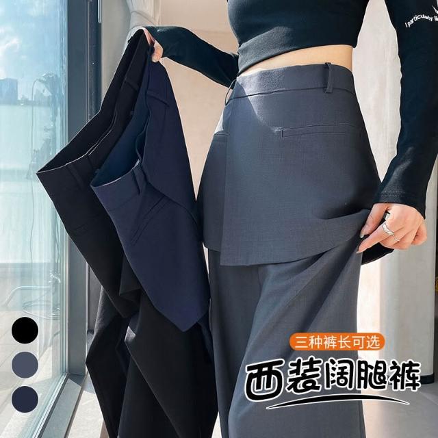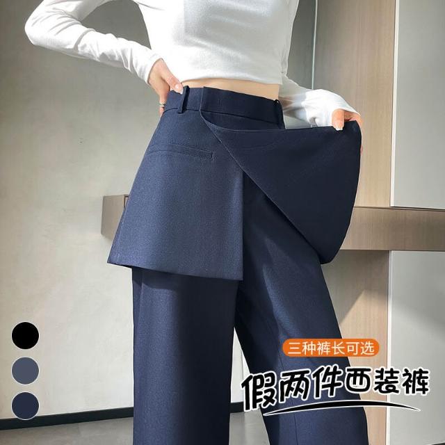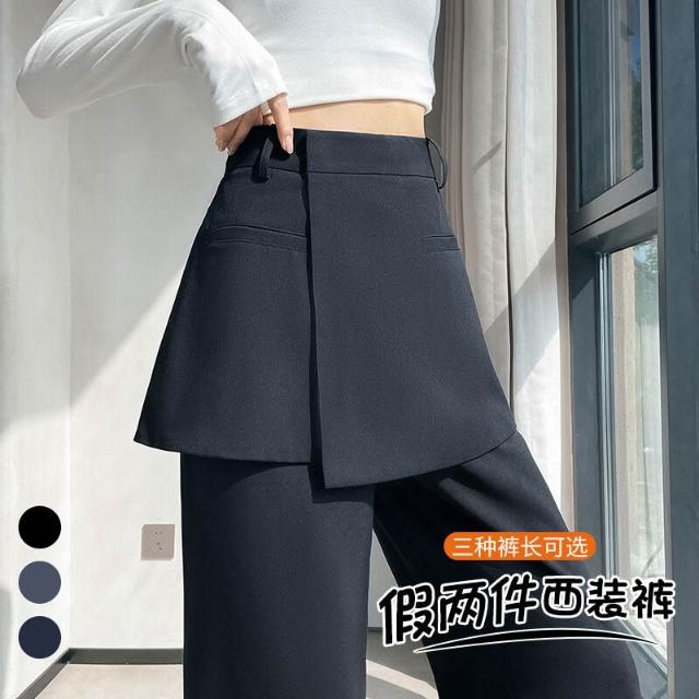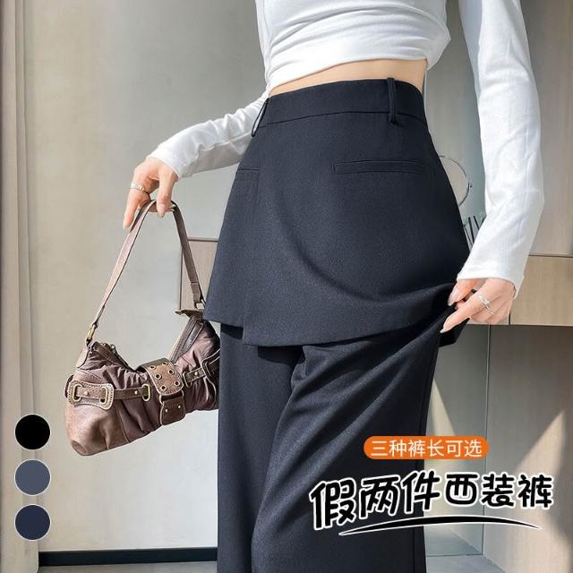 2025秋季新款假兩件西裝闊腿褲高腰裙褲直筒窄版裙褲女