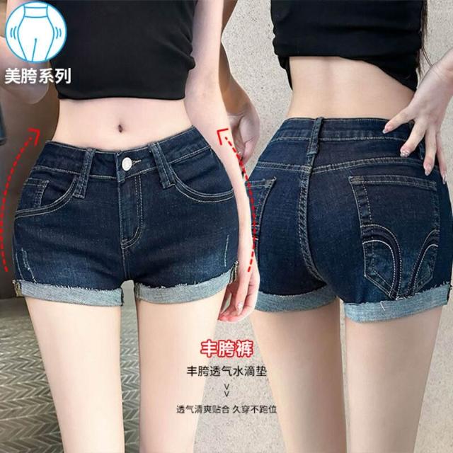 低腰豐胯卷邊彈力牛仔短褲女2025春季性感辣妹顯瘦包臀熱褲