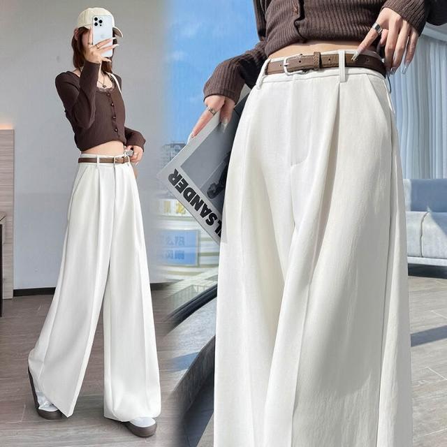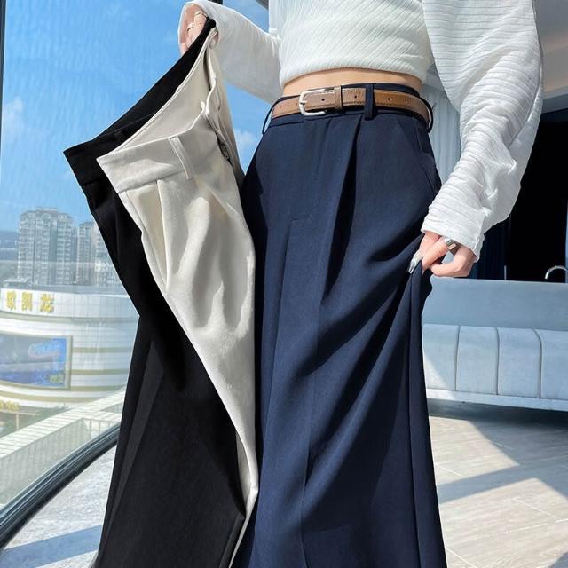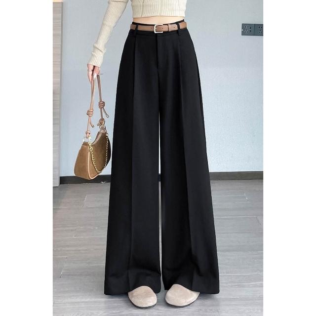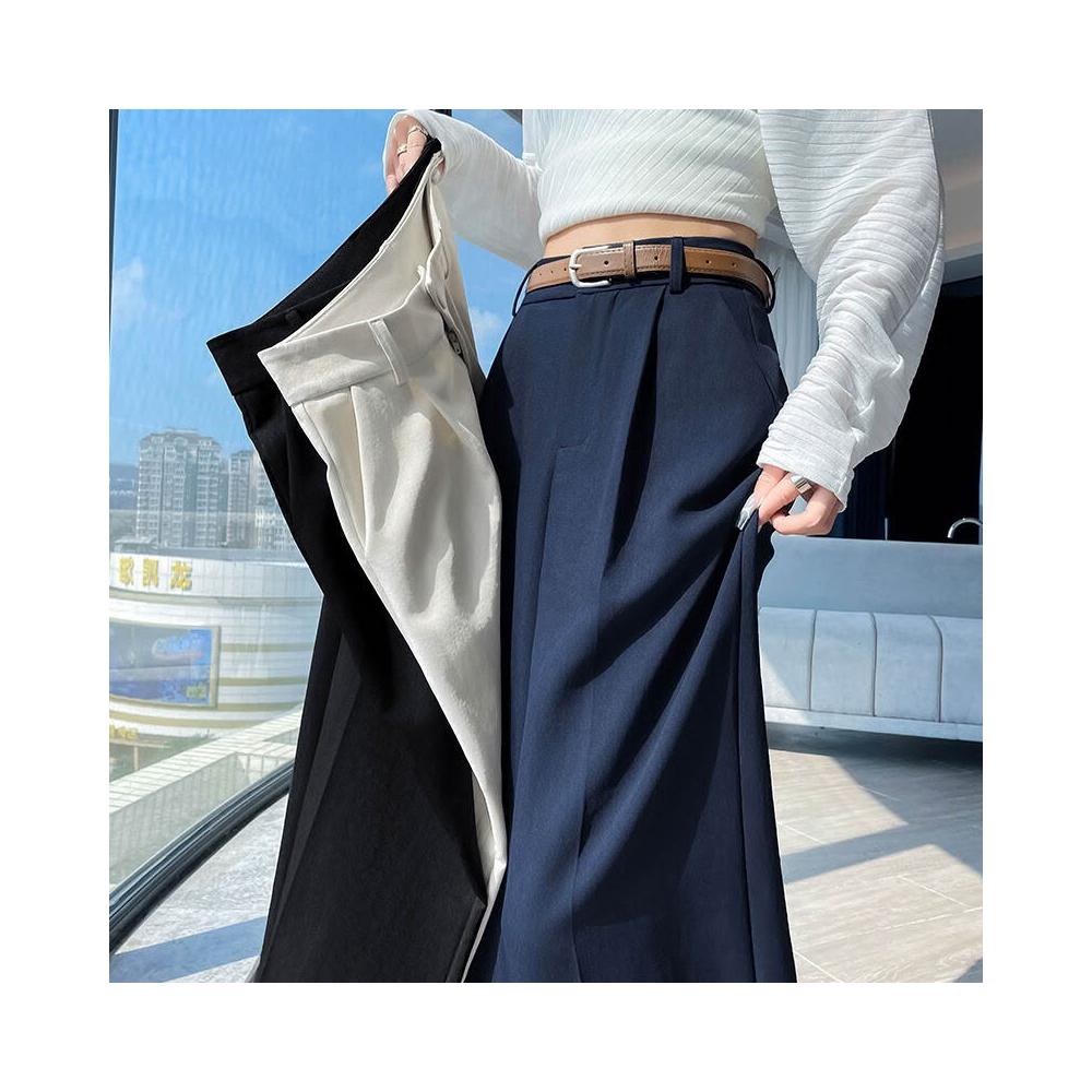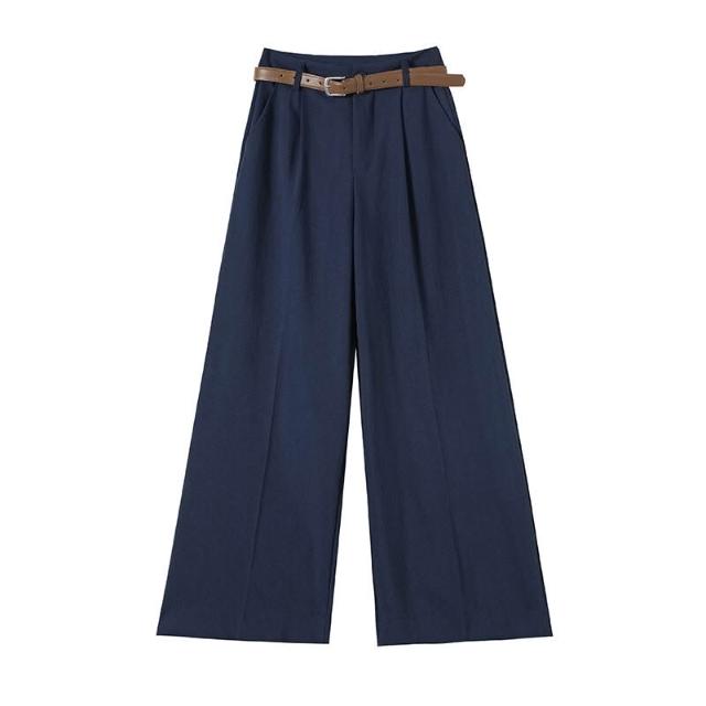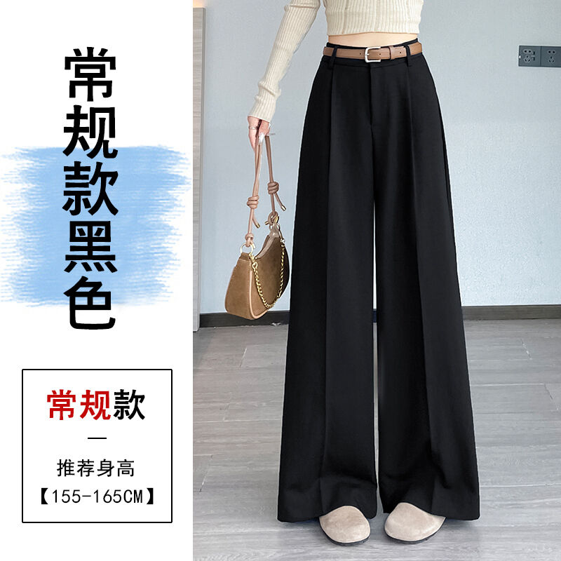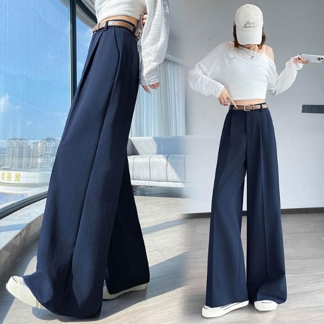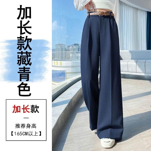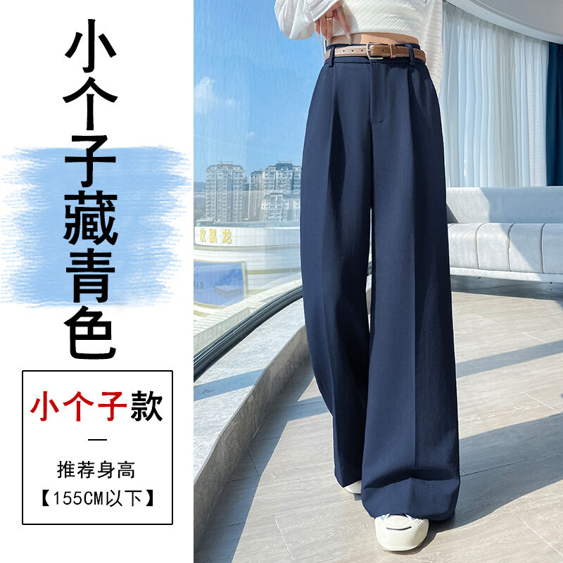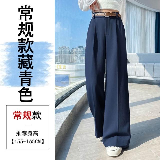 藏青色高級感西裝褲女2025秋季新款高腰垂感百搭顯瘦直筒休閑褲子