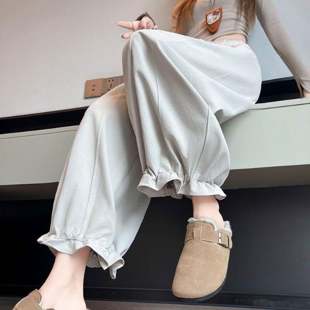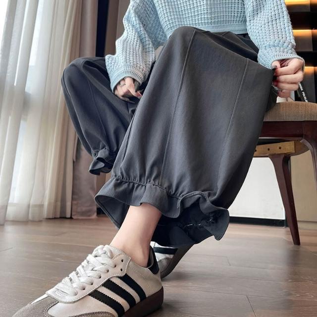 木耳邊花苞褲女春季松緊腰顯瘦寬松休閑闊腿九分哈倫燈籠褲