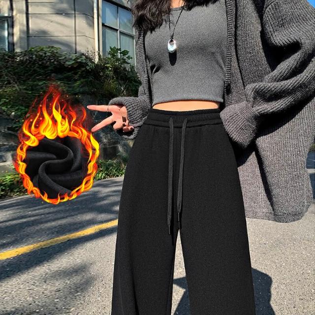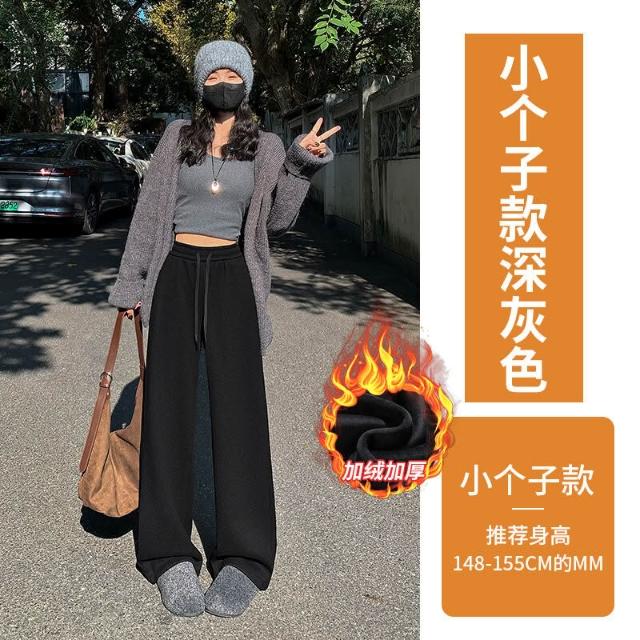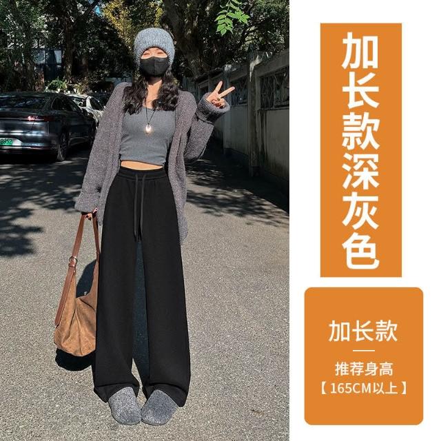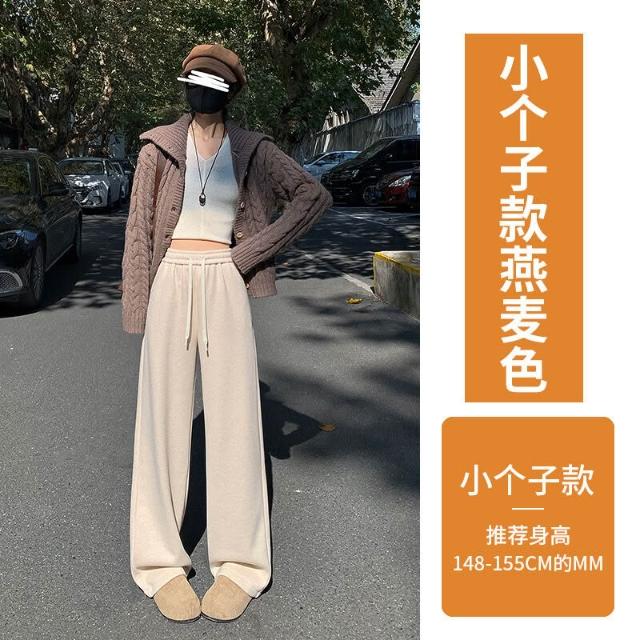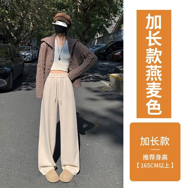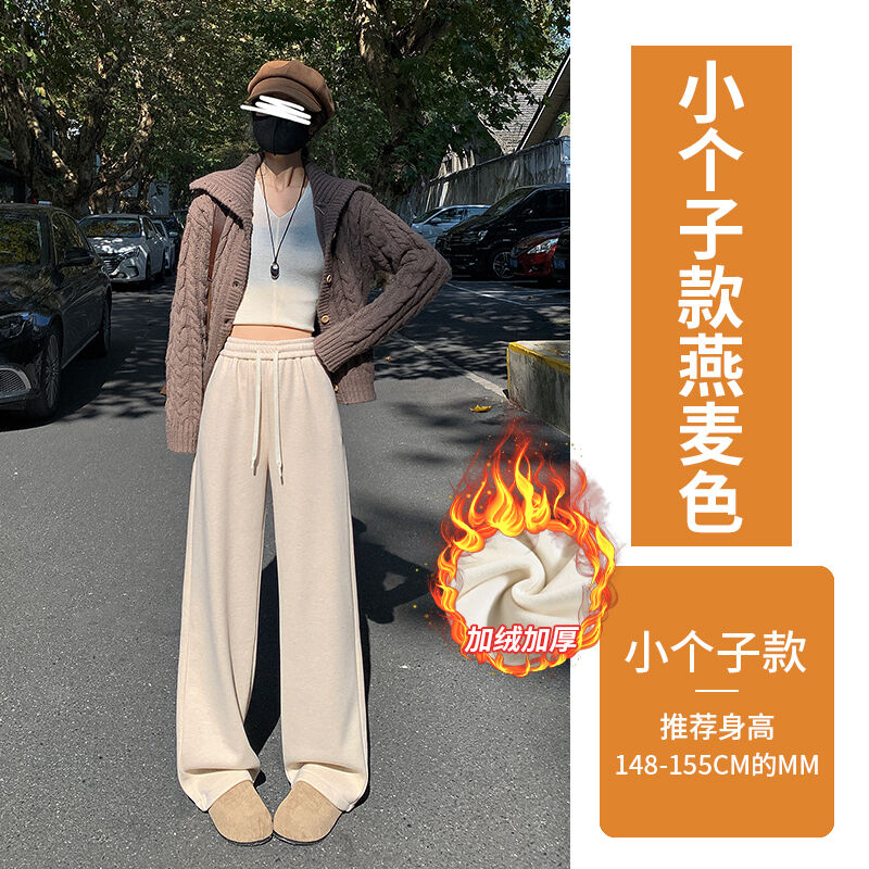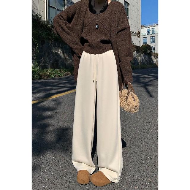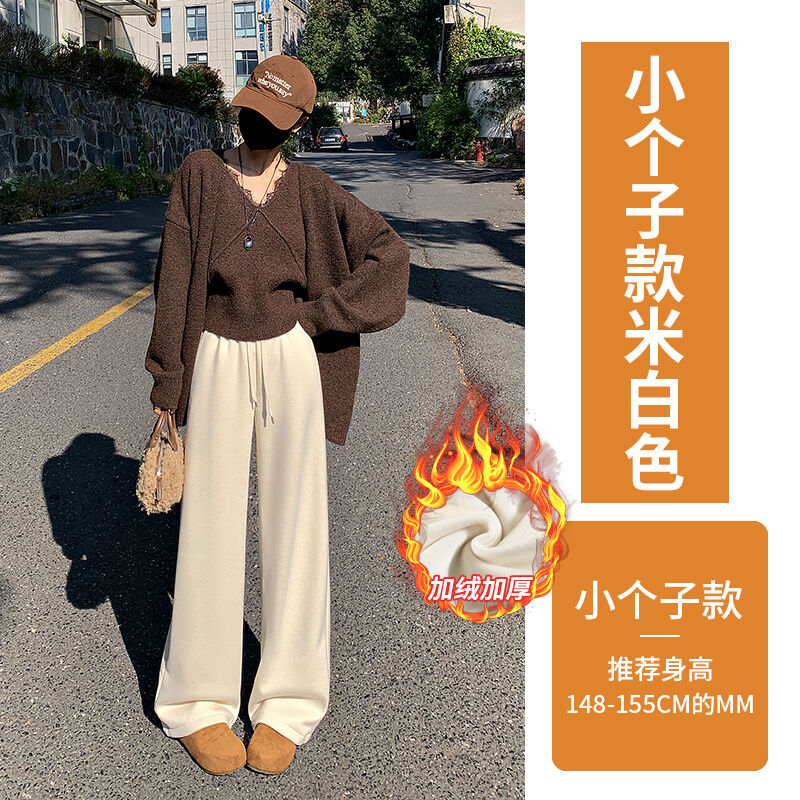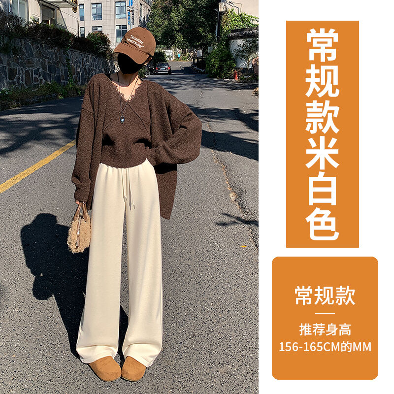 米白色醋酸羊毛闊腿褲女秋冬加絨加厚高腰顯瘦垂感窄版直筒西裝褲
