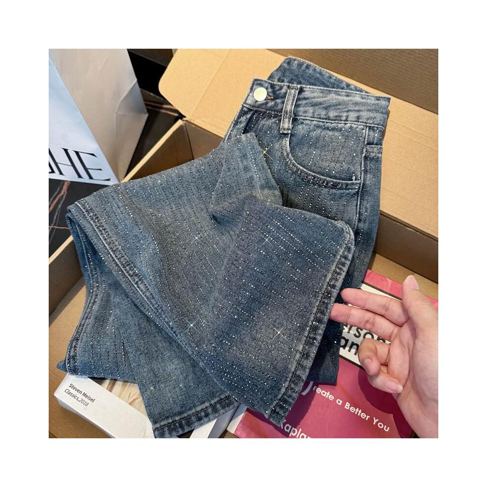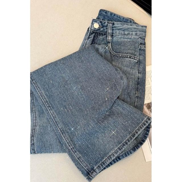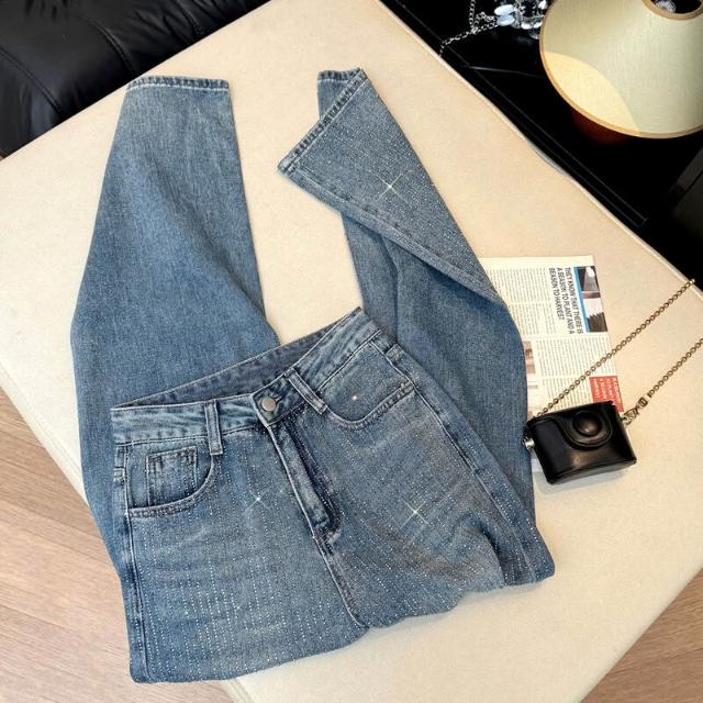 重工滿鉆bling閃亮牛仔褲女辣妹高腰直筒寬松顯瘦早春闊腿褲
