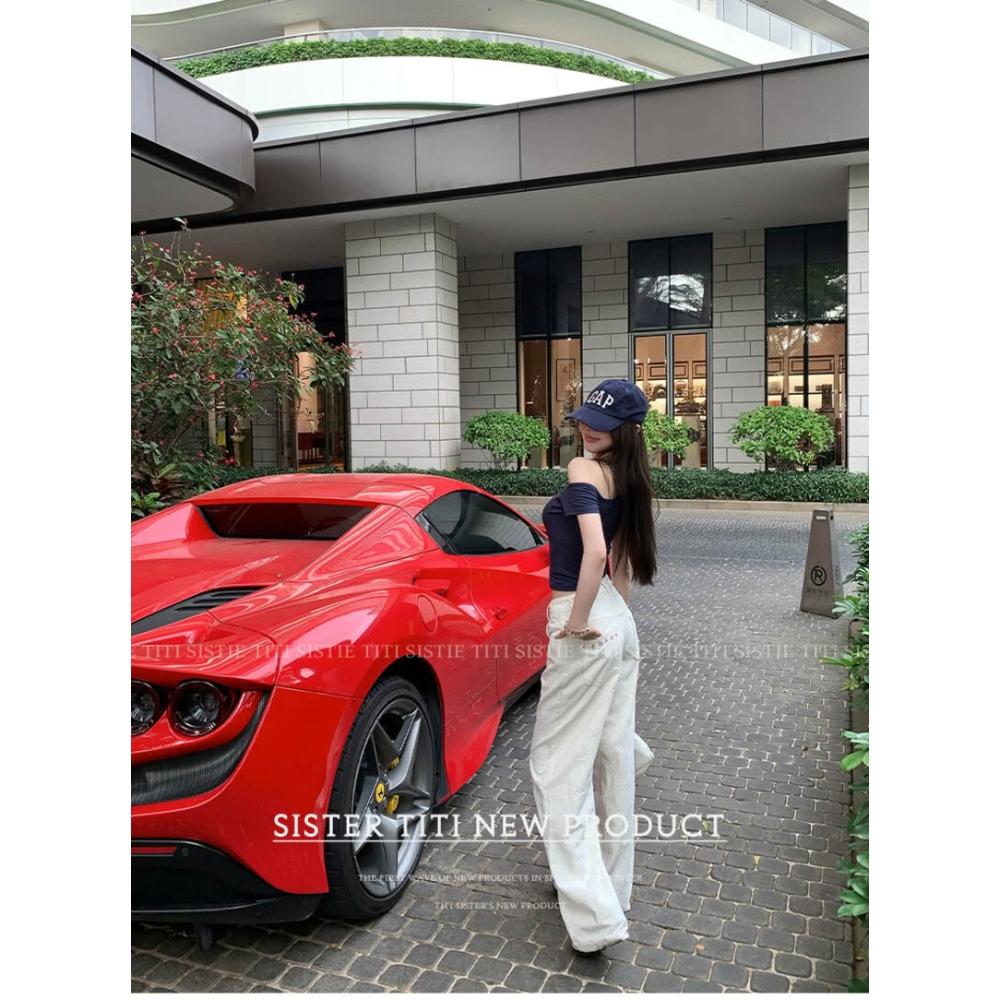titi小姐姐春日奶芙提花牛仔褲女夏高級感顯瘦氣質白色直筒褲