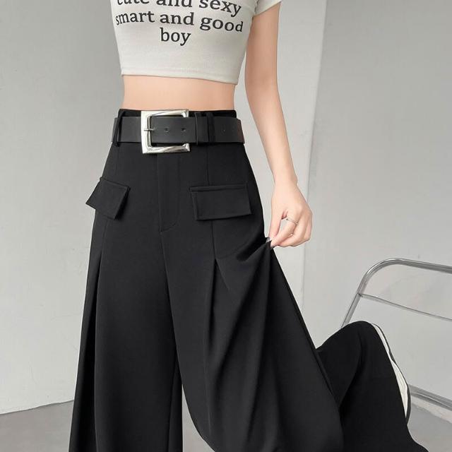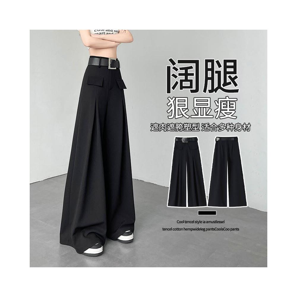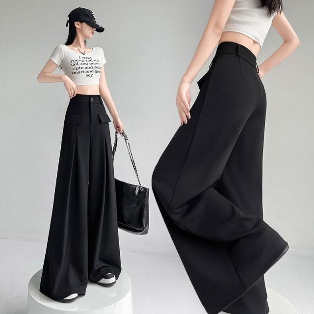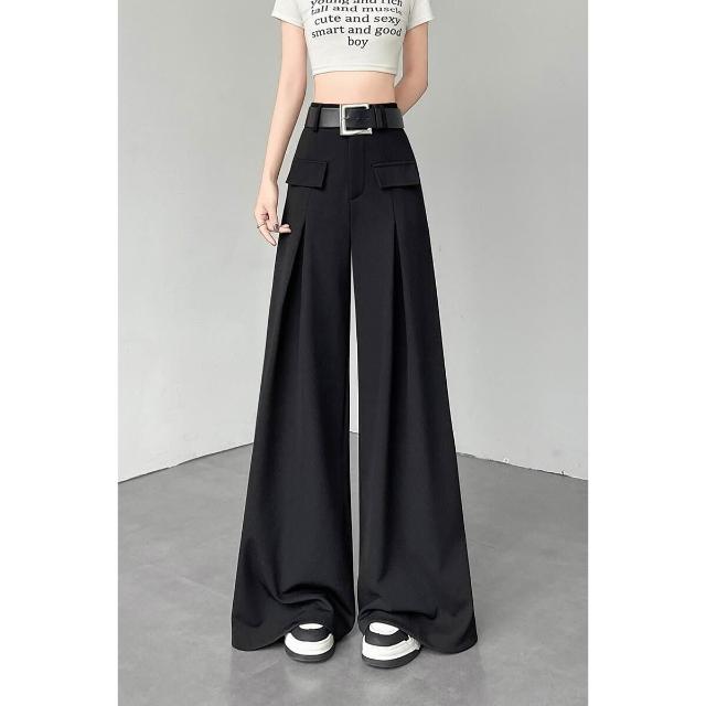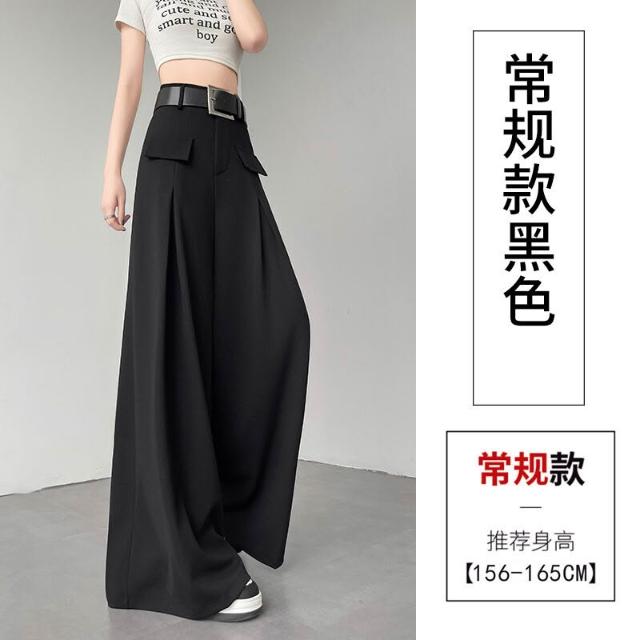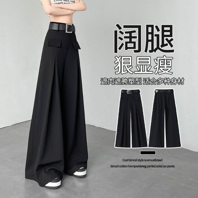 黑色闊腿褲女夏季新款高腰垂感西裝褲寬松休閑顯瘦拖地直筒褲子