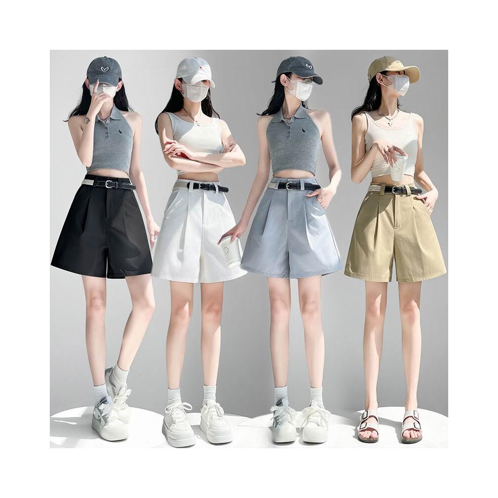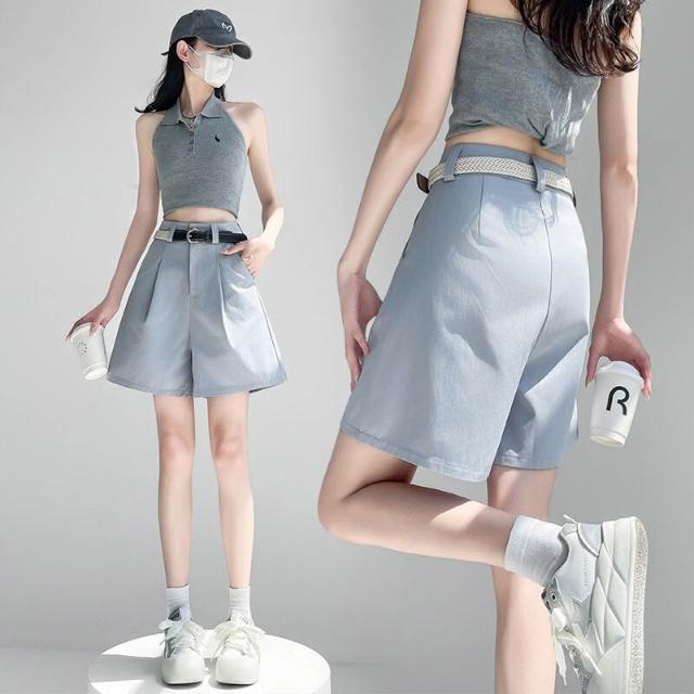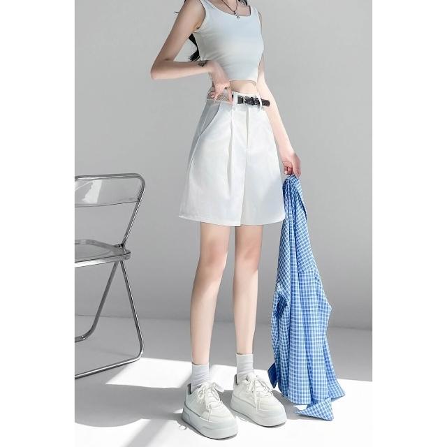 白色西裝短褲女夏季高腰顯瘦A字辣妹百搭寬松休閑小個子五分褲