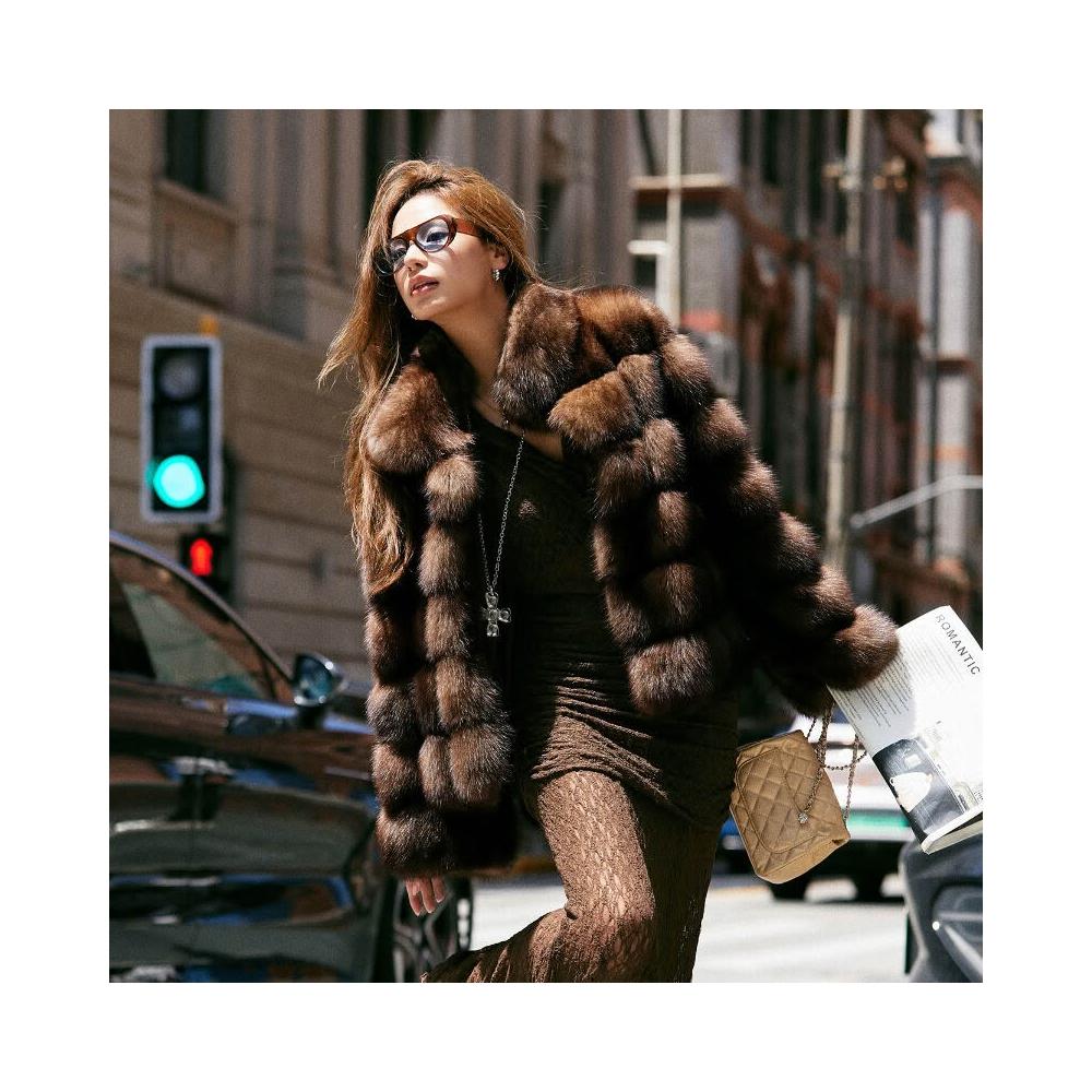 阿穎皮草畫報女郎進口俄羅斯紫貂年輕款皮草外套仿貂皮大衣冬