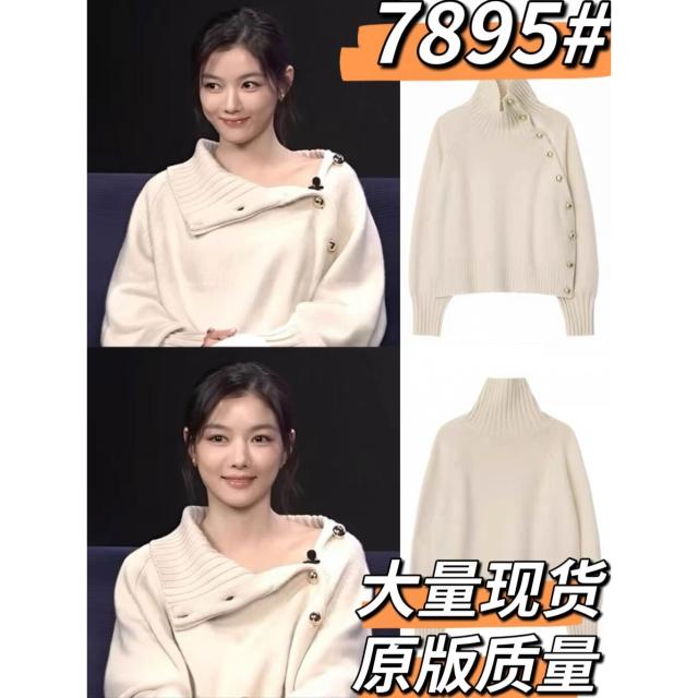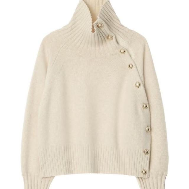 金裕貞同款乳白色毛針織衫女軟糯慵懶風高領系扣設計感毛衣女冬