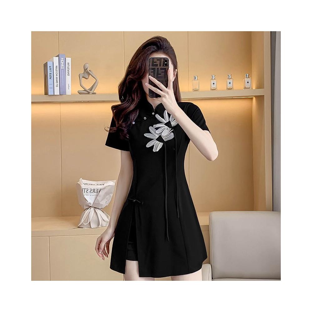 新中式國風兩件套氣質立體網紗花朵上衣配短裙套裝兩件套