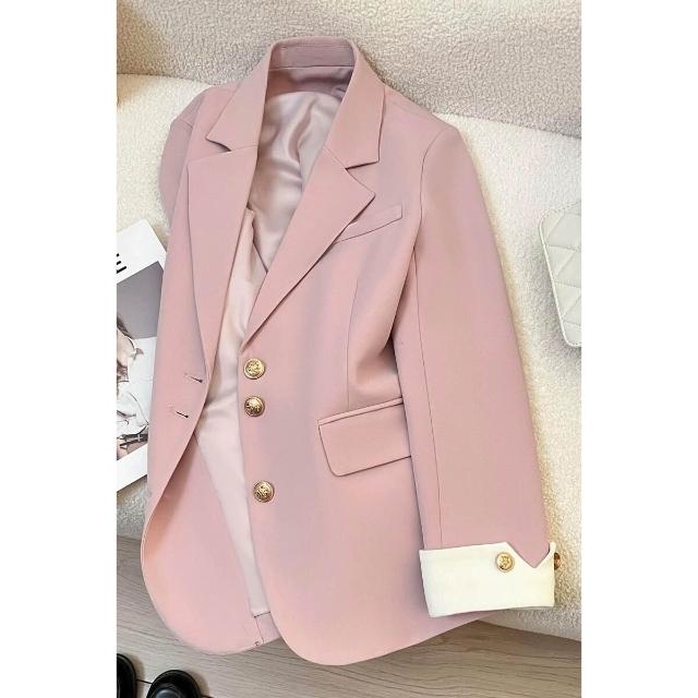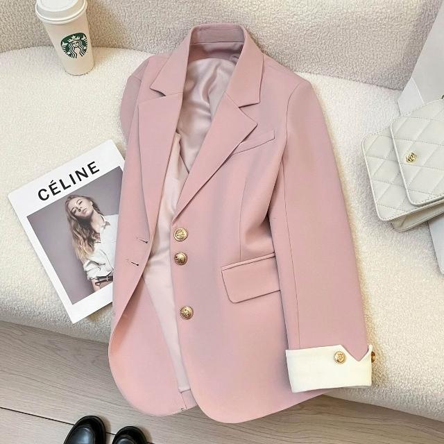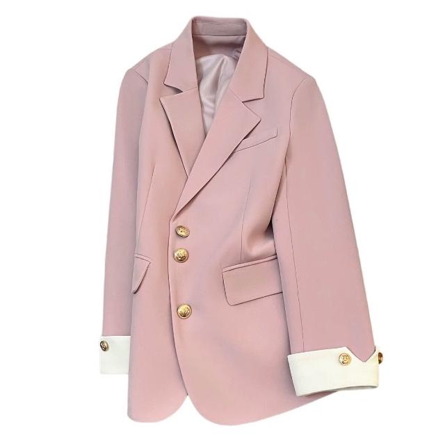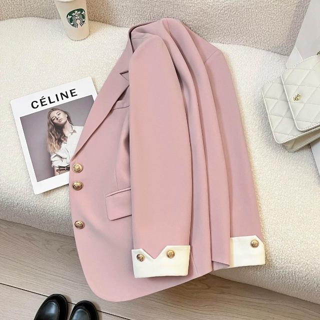 粉色西裝外套女2025春秋季新款韓版百搭休閑設計感今年流行小西服