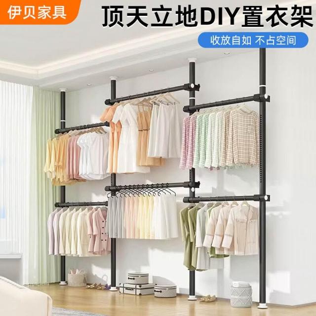 掛衣架 衣帽架 衣櫥架 轉角架 頂天立地DIY掛衣架伸縮掛衣桿衣帽間組合衣架落地臥室收納晾衣架