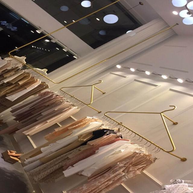 掛衣架 衣帽架 衣櫥架 轉角架 訂製服裝店禮服婚紗展示架上墻壁掛衣架金色簡約女裝童裝衣服貨架