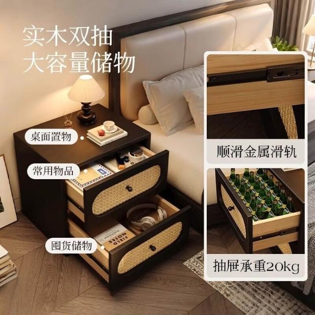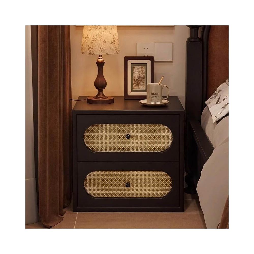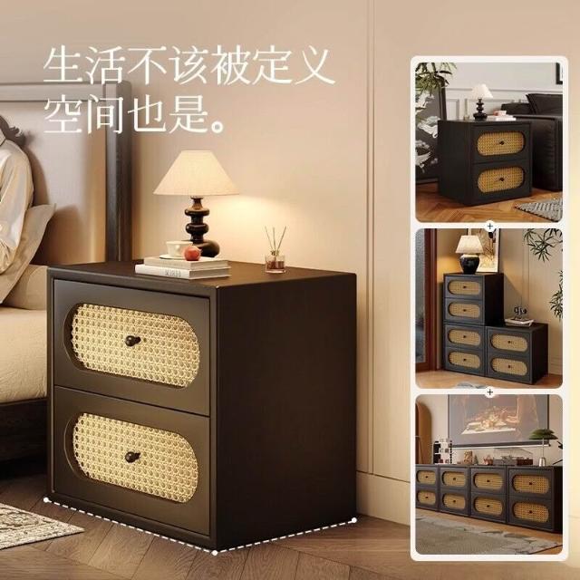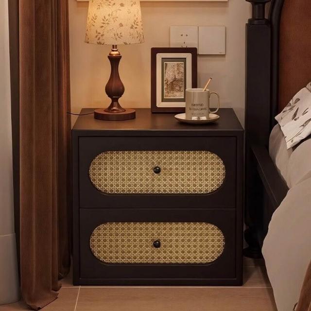 床頭櫃 抽屜櫃 床頭收納架 邊櫃 邊桌 邊幾 床頭櫃中古風法式小型復古藤編家用臥室2025爆款輕奢高級感床邊櫃