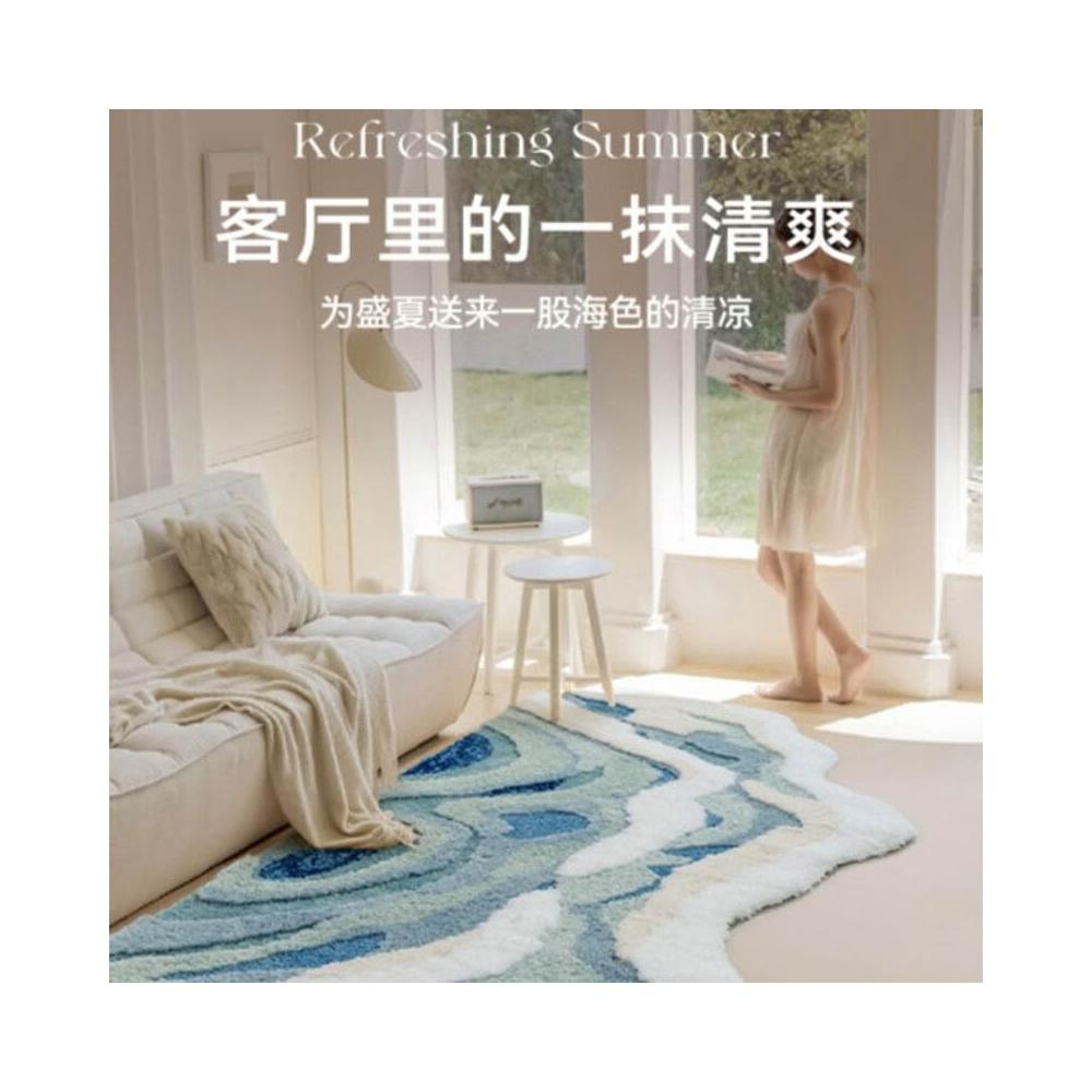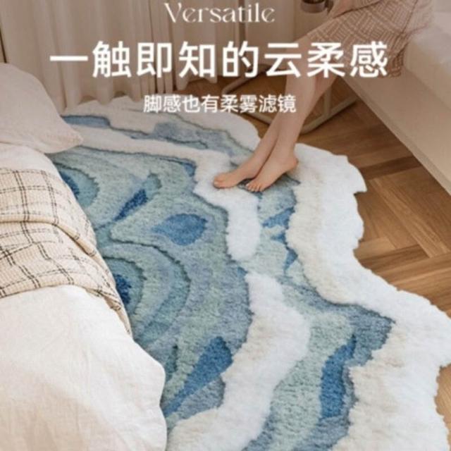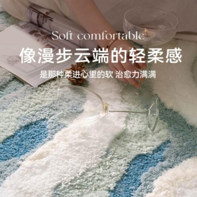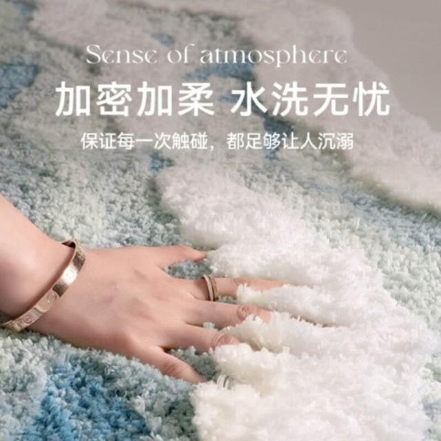 家用地毯 地毯 地墊 海浪款植絨地毯柔軟簇絨臥室床邊毯防滑吸水衣帽間地毯客廳茶幾毯