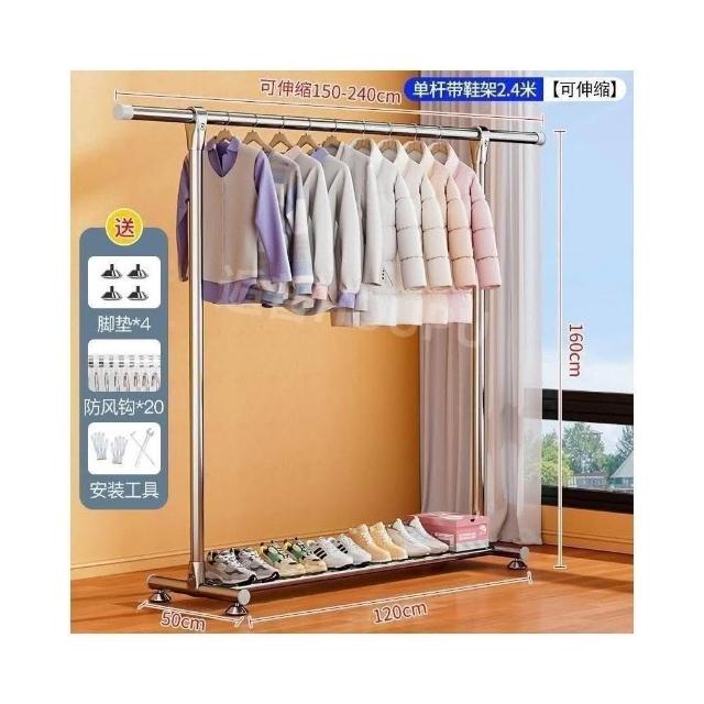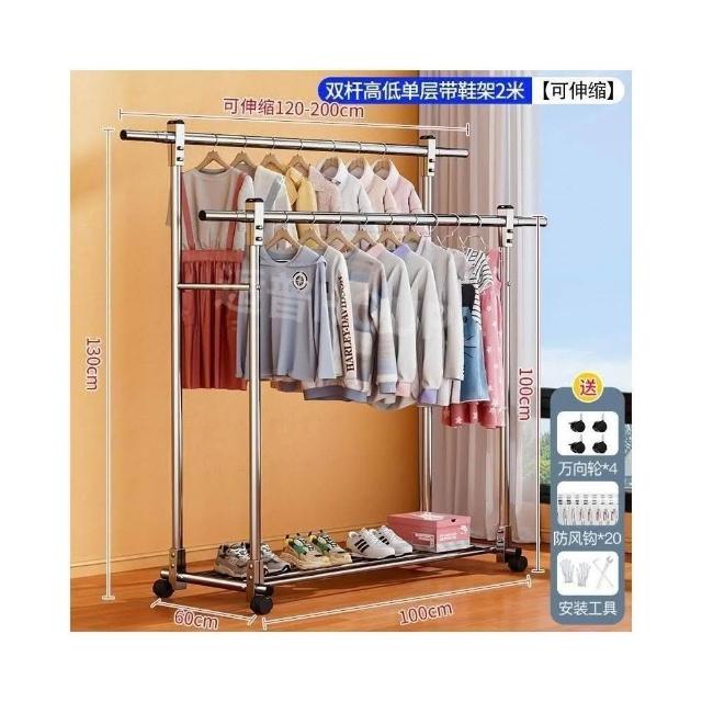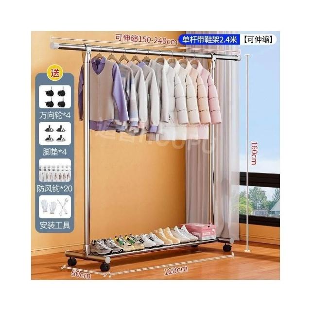 免運 熱銷 曬衣架 晾衣架 不銹鋼晾衣架 簡易伸縮曬衣架 落地式晾衣桿 移動式曬衣架 多功能晾衣架 帶輪可伸縮衣架