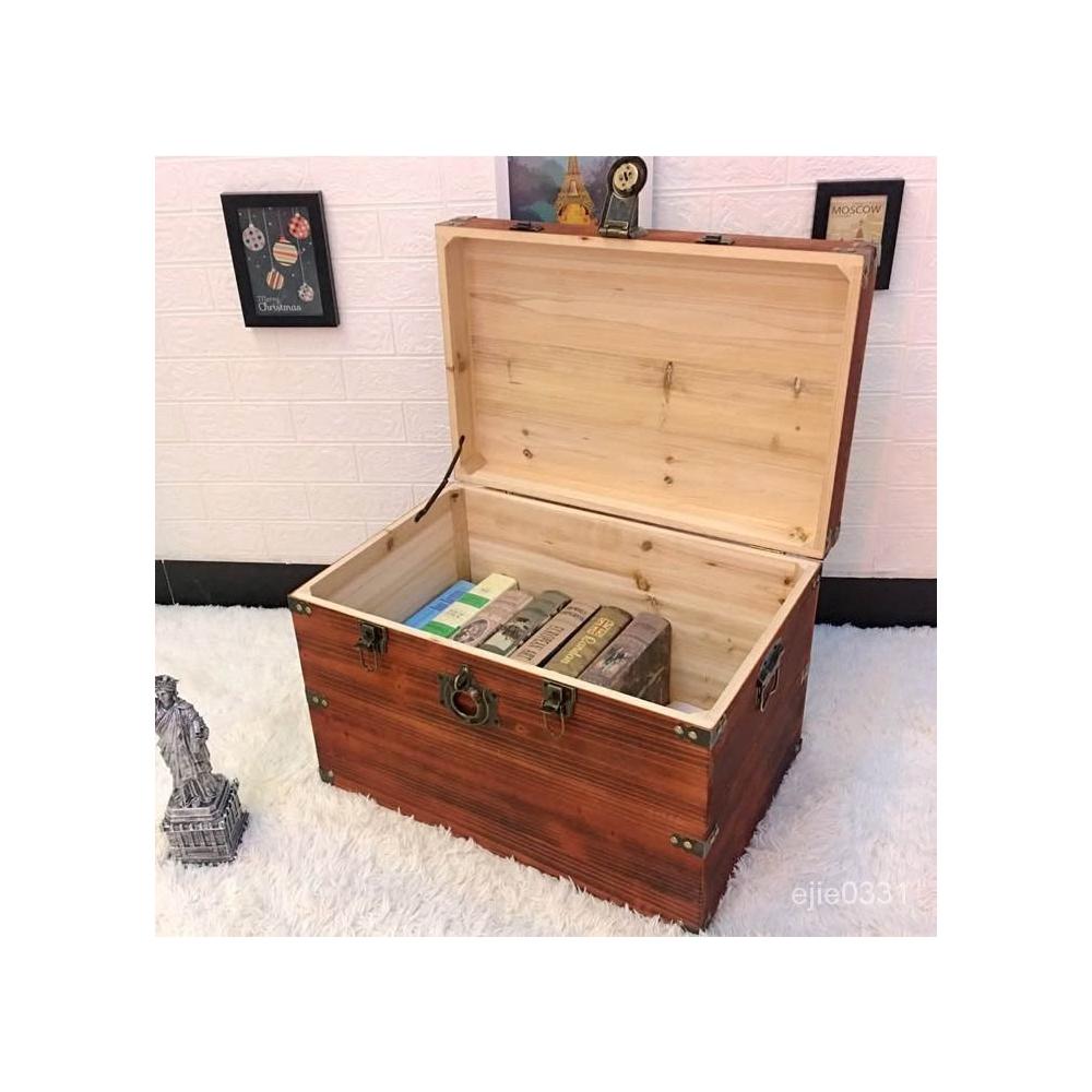 復古木箱 免稅木箱子帶鎖儲物箱實木收納箱複古木盒子特大號長方形帶蓋木箱 RZXY
