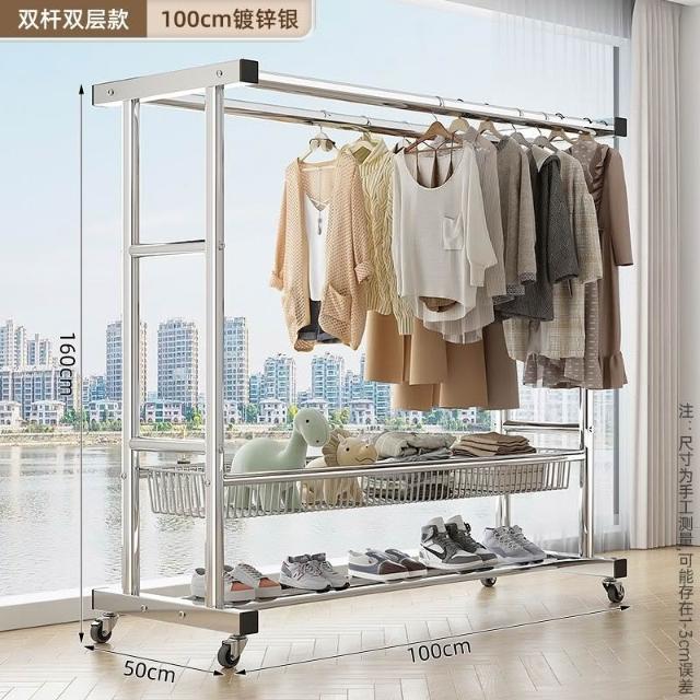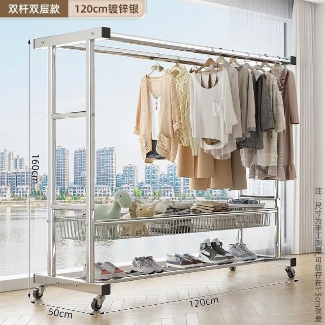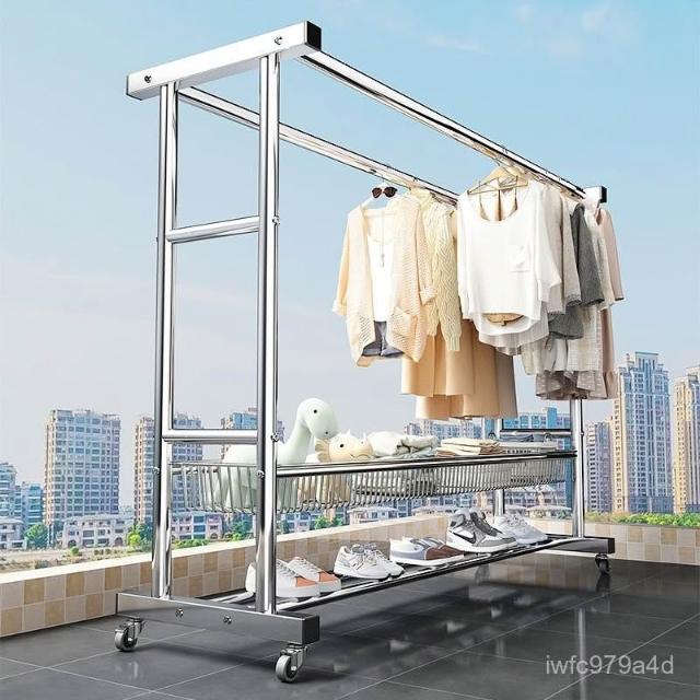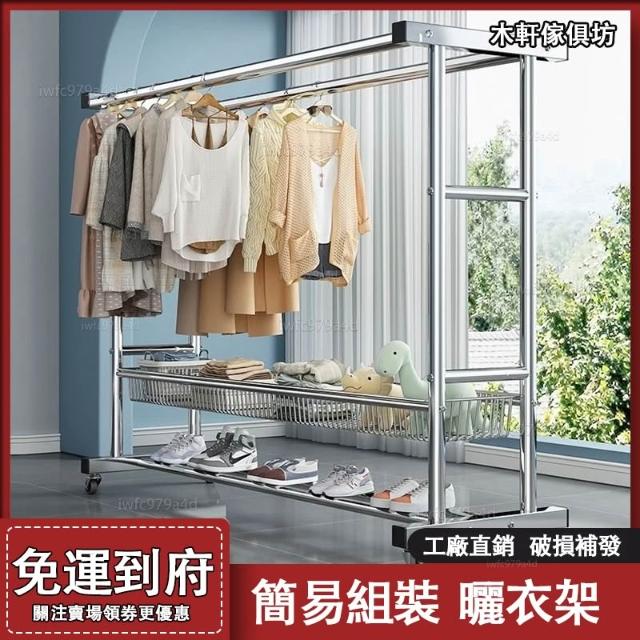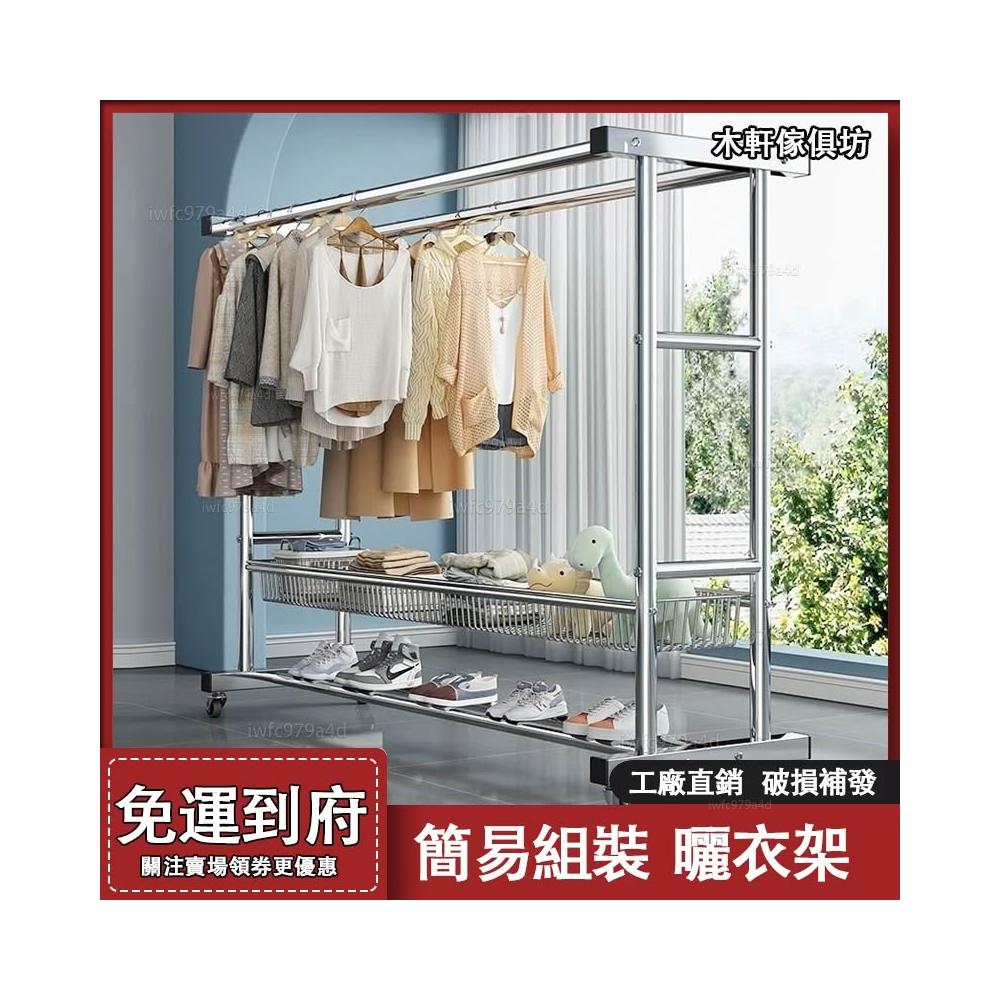 戶外曬衣架 免運#簡易組 落地晾衣架 家用陽臺戶外晾衣架 雙層臥室掛衣架 曬衣架 大型曬衣架 帶網籃曬衣架 鍍鋅晾衣架
