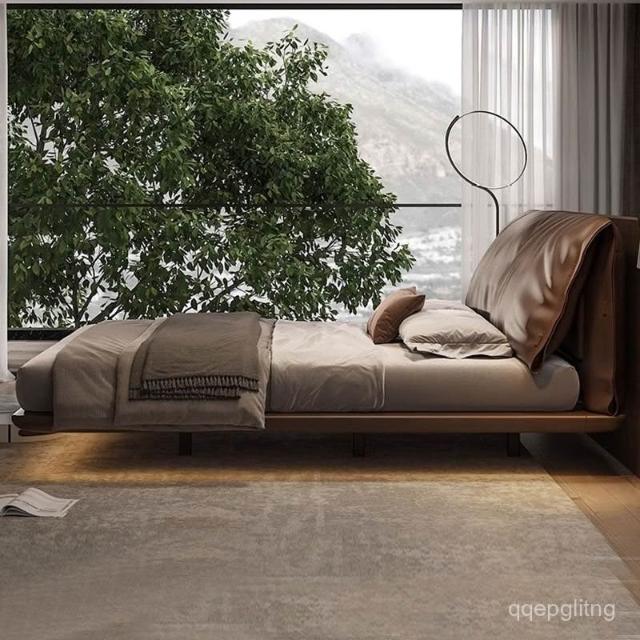 免運 實木床架#懸浮床 輕奢現代簡約大象耳朵懸浮床主臥室簡約意式極簡真皮床網紅軟包床雙人床 5寸床 6寸床 排骨架