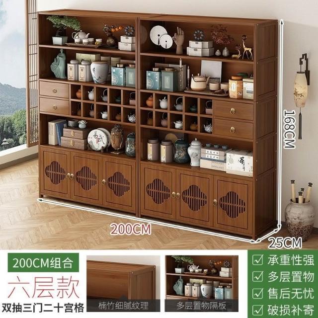 免運 博古架 置物架 博古架非實木新中式茶水櫃茶櫃置物架沙髮邊幾茶桌邊櫃茶具展示櫃