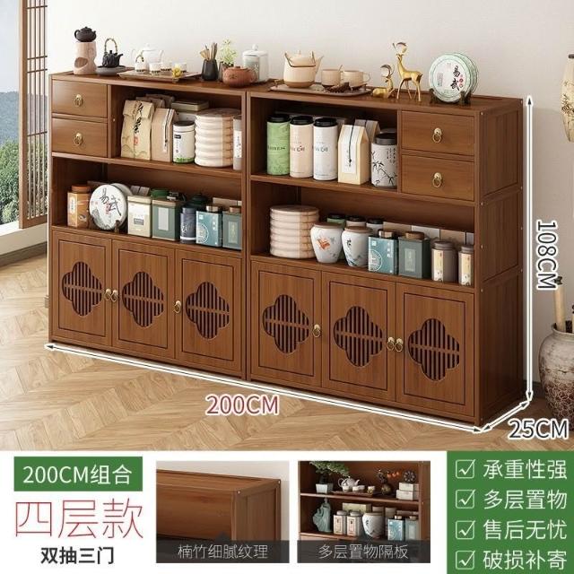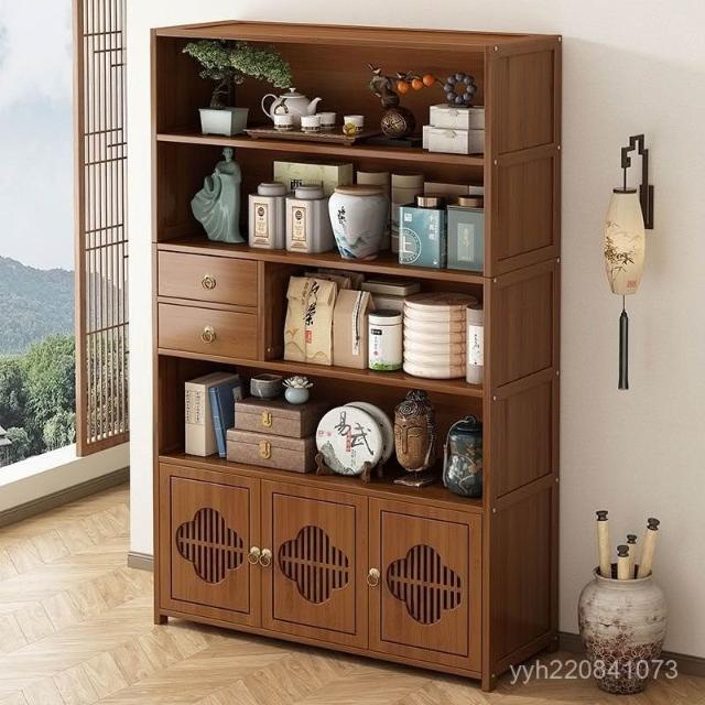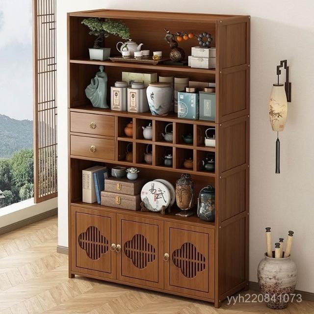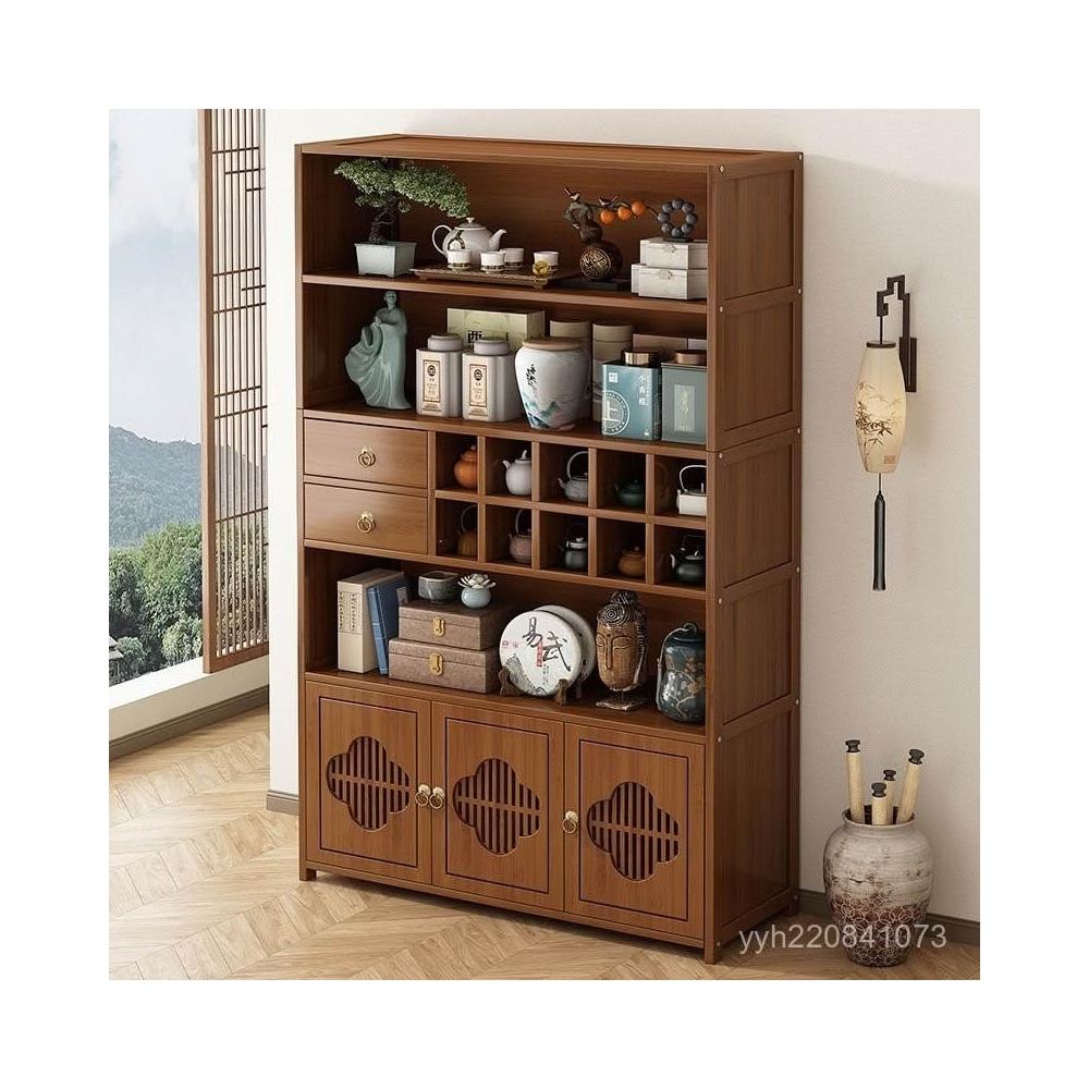 免運 博古架 置物架 博古架非實木新中式茶水櫃茶櫃置物架沙髮邊幾茶桌邊櫃茶具展示櫃