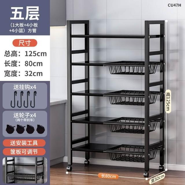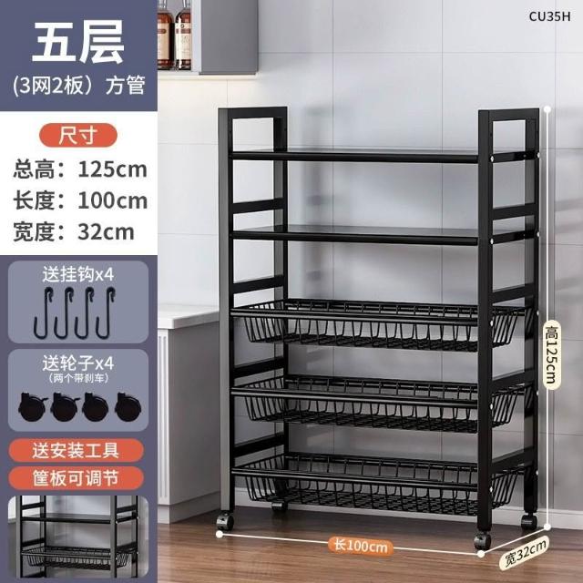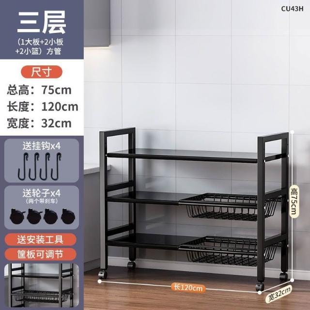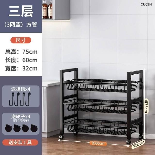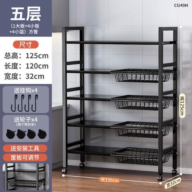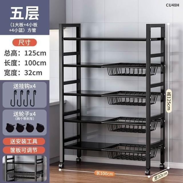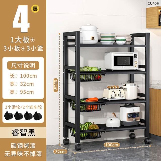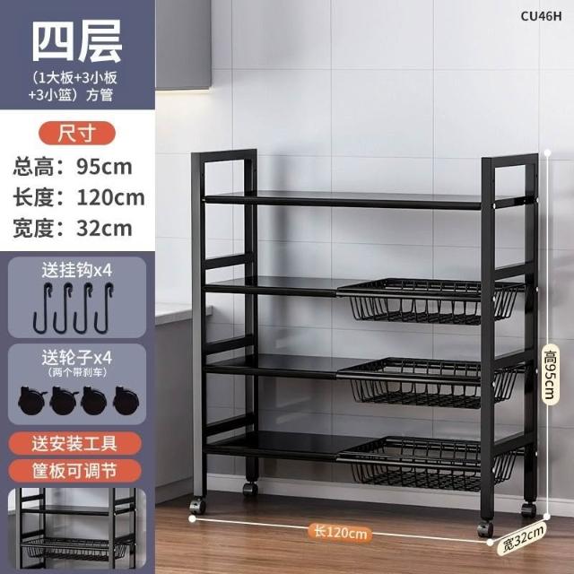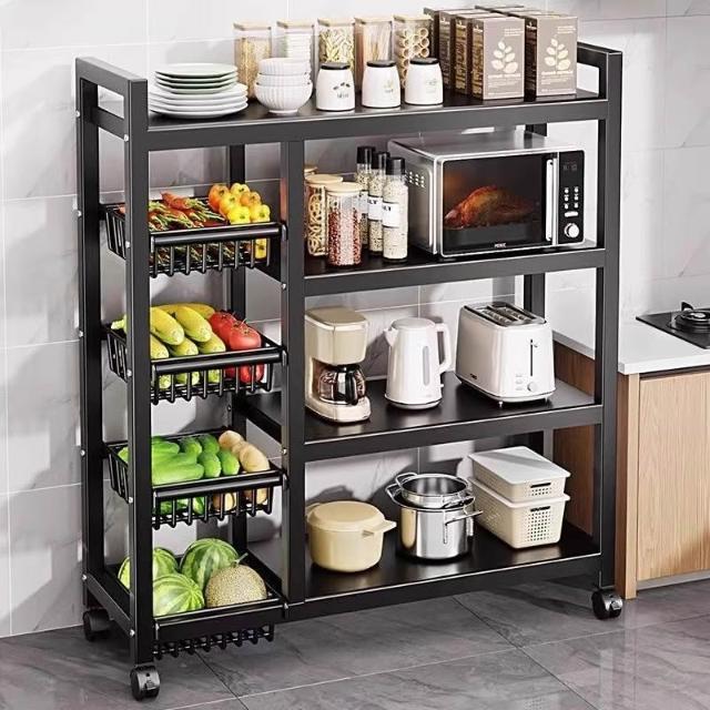 跨境多層果蔬收納架多功能雜物櫥櫃儲物架子廚房落地微波爐置物架