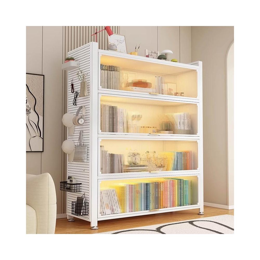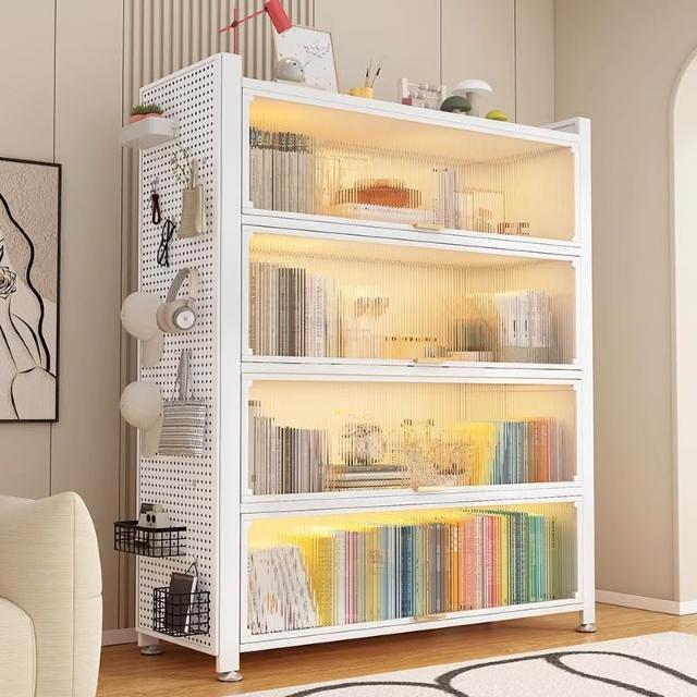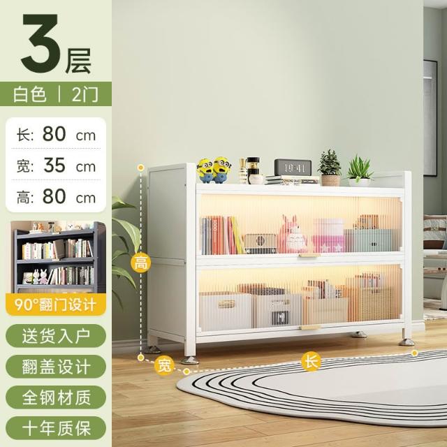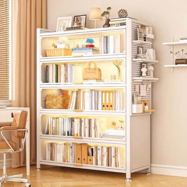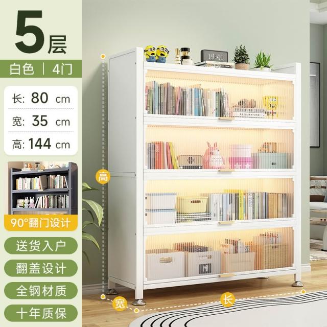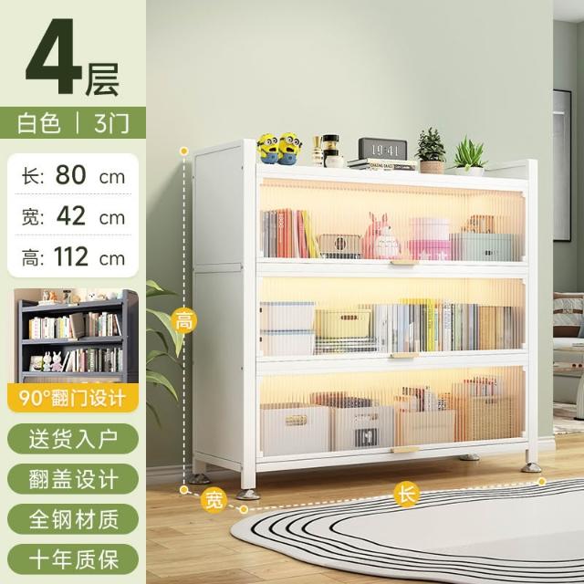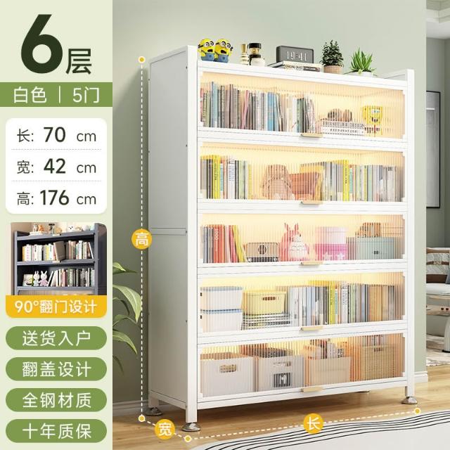 工廠免運 钢制书柜带门儿童书架防尘储物柜客厅展示柜铁艺卧室置物架收纳柜