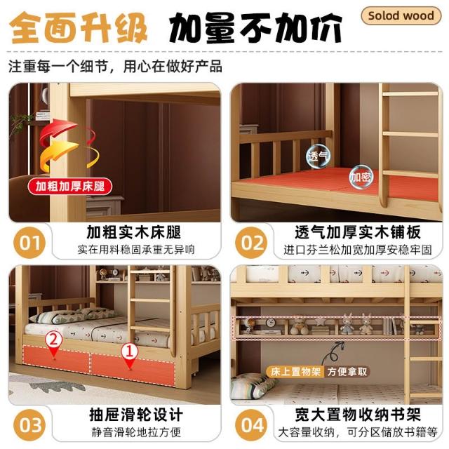 上下床双层床全实木高低床大人成年宿舍上下铺木床两层儿童子母床