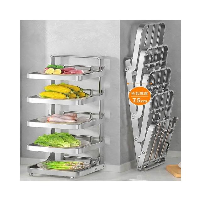 不銹鋼廚房置物架可折疊備菜架配菜盤收納架多層壁掛臺面放菜架子