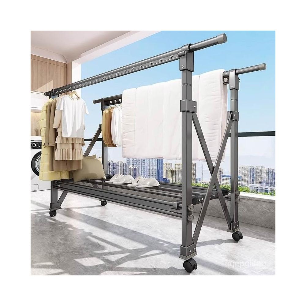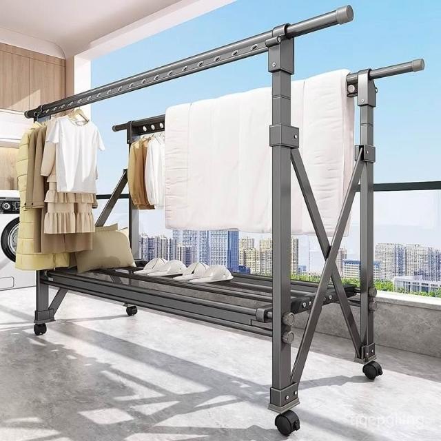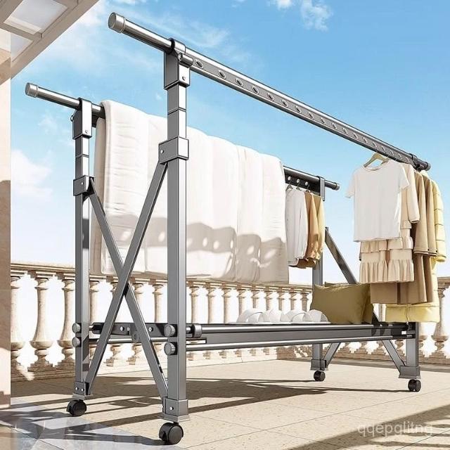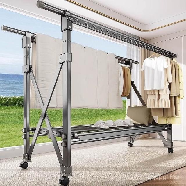 免運 簡易組裝 曬衣架 貝凱晾衣架陽臺家用落地折疊涼衣桿室內伸縮掛衣服架子曬被子神器