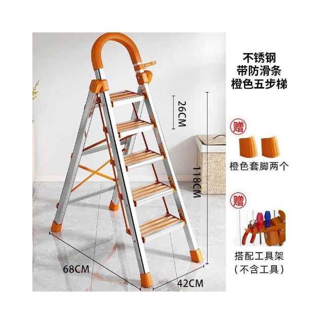 家用梯子折疊梯子不銹鋼五步踏板梯人字梯加寬加厚鋼管梯移動樓梯