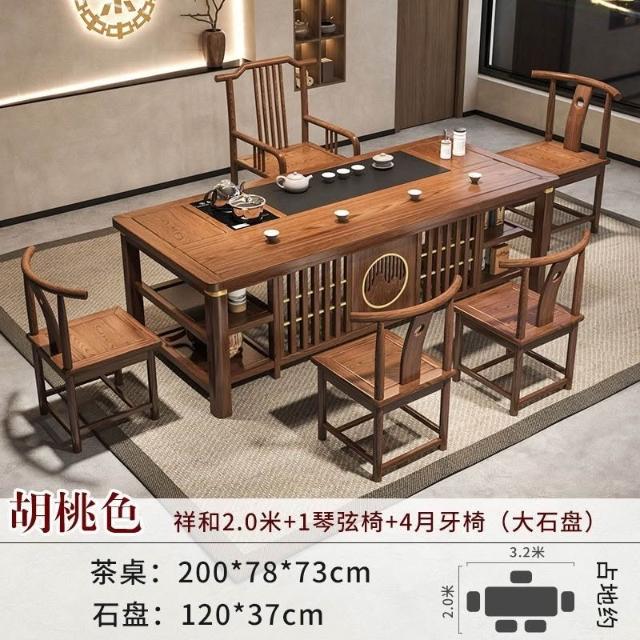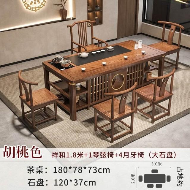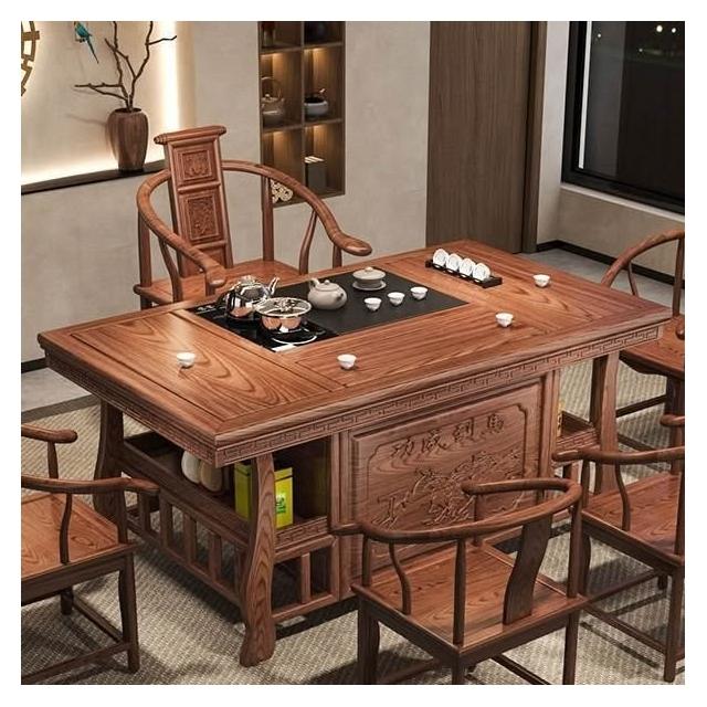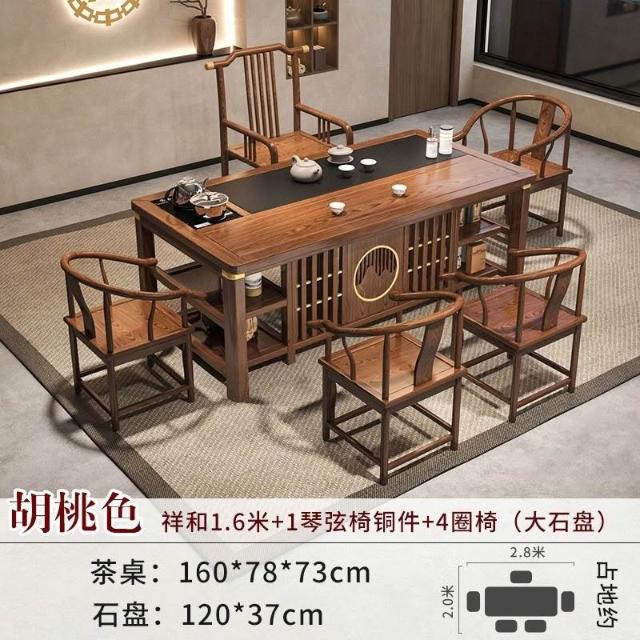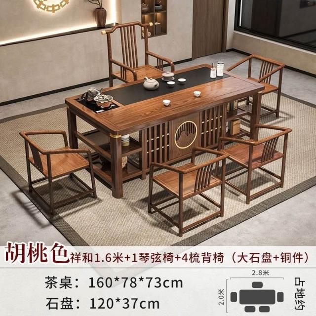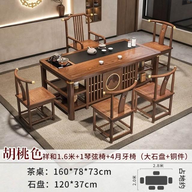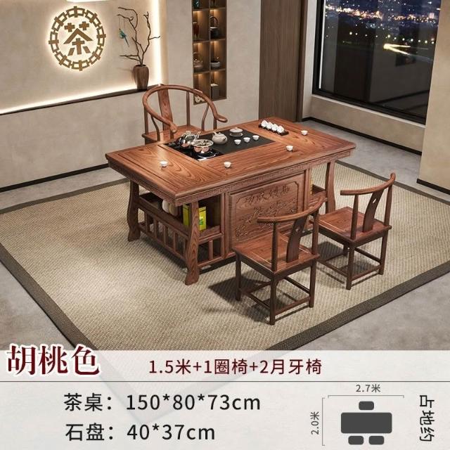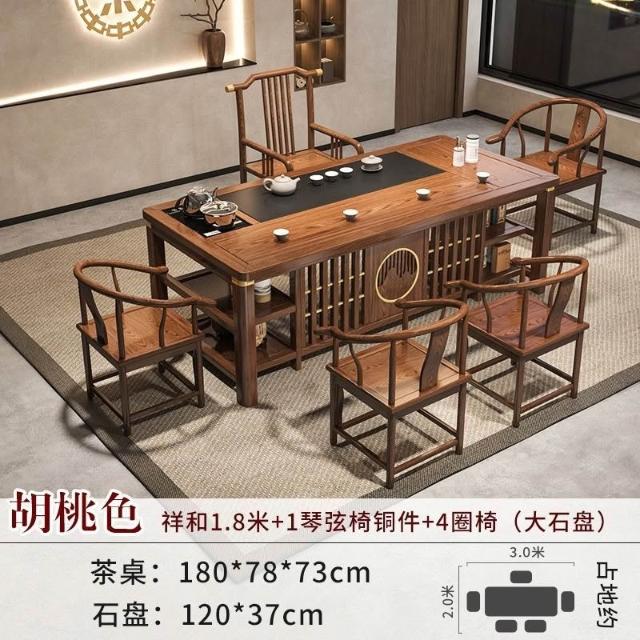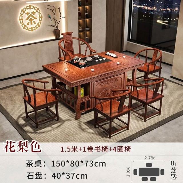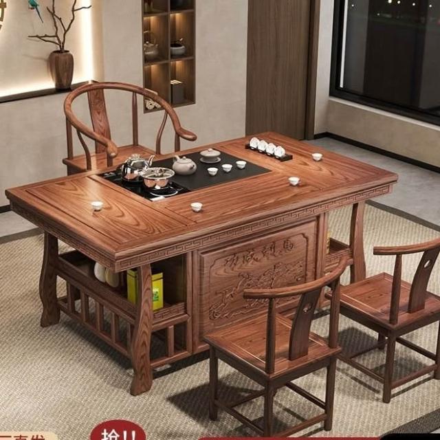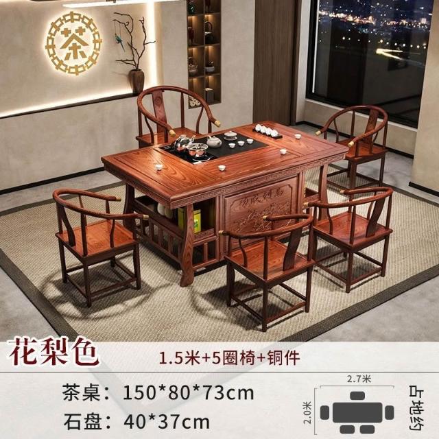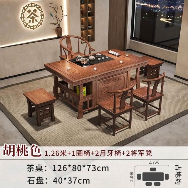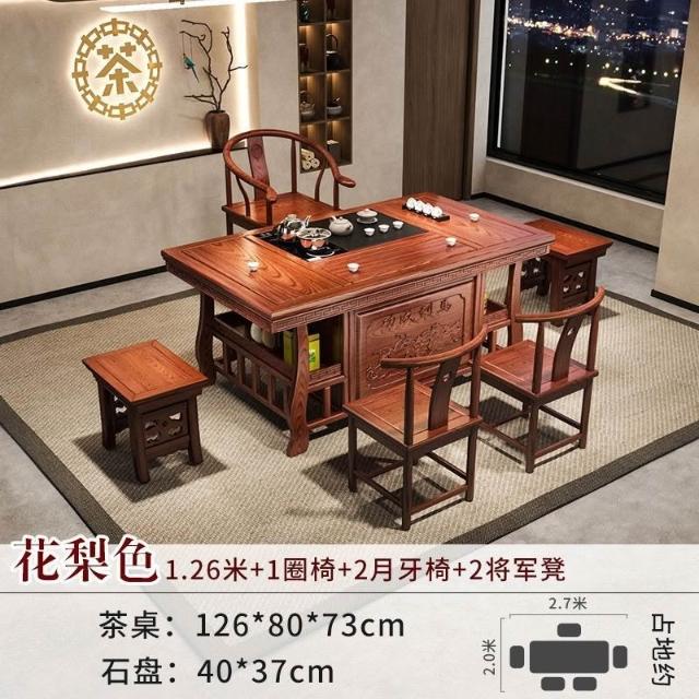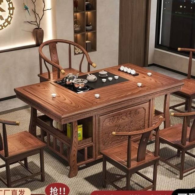 免運 工廠直銷 實木茶桌椅組閤明清古典新中式功夫茶幾整套一體辦公家用泡茶臺桌 實木泡茶桌 功夫茶 實木桌