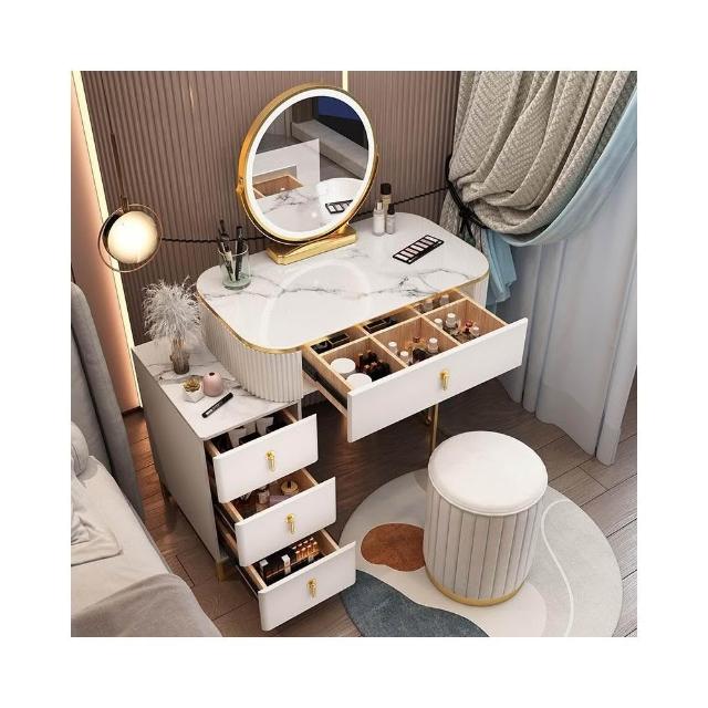 免安裝 梳妝台 梳妝桌 化妝桌 梳妝櫃 簡易化妝台 小戶型梳妝台收納櫃一體 卧室現代簡約小型輕奢化妝桌60cm