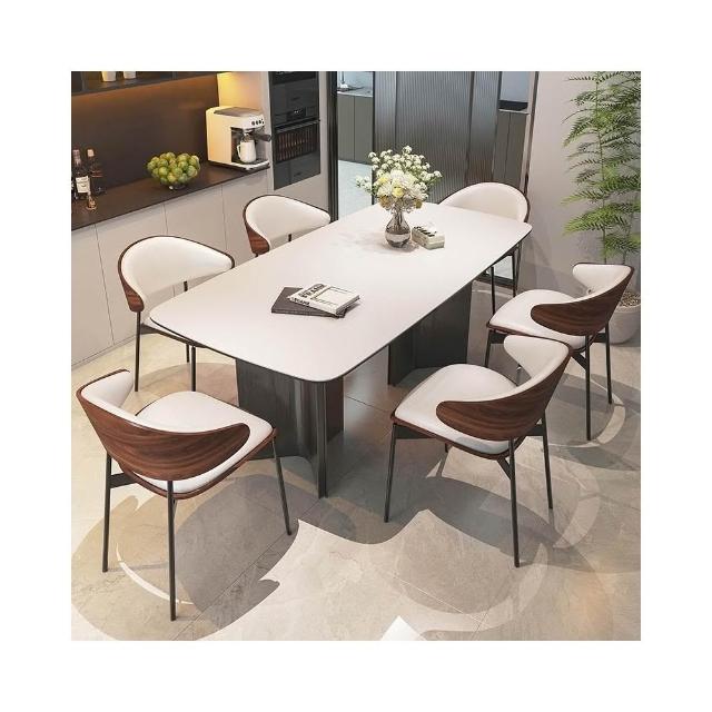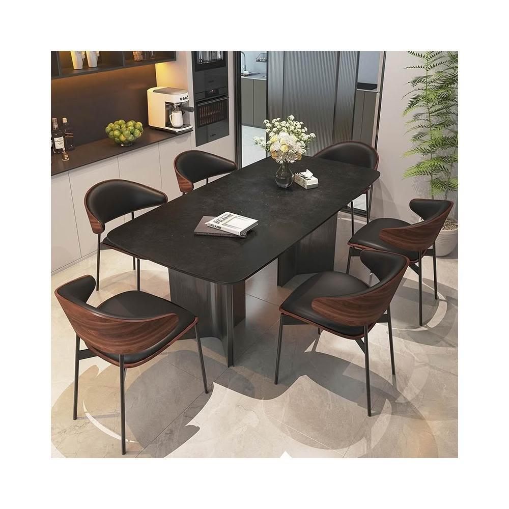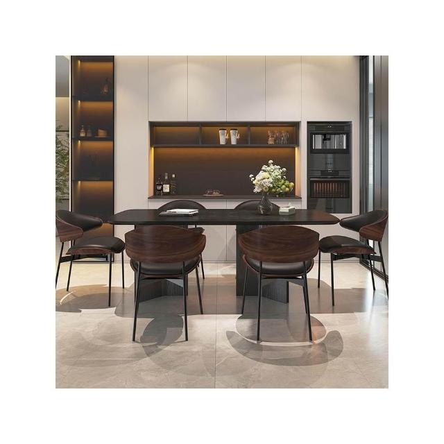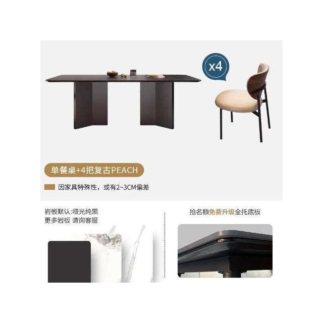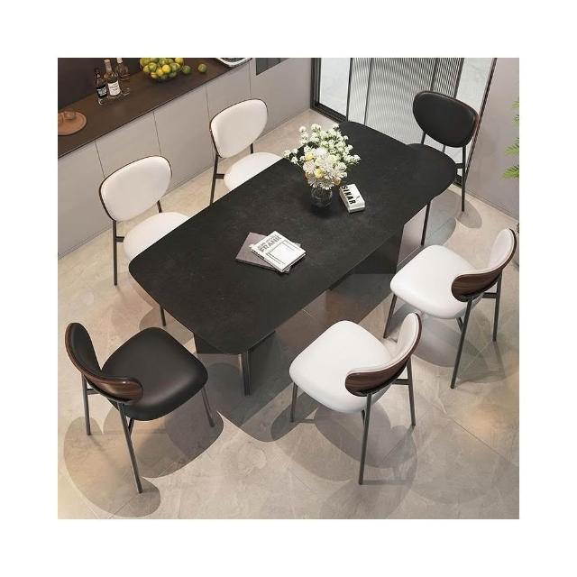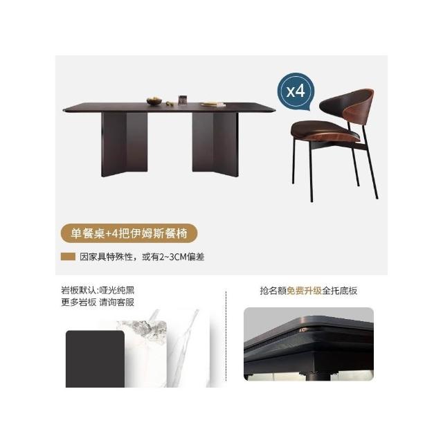 岩板餐桌意式簡約現代黑色岩板餐桌椅組合長方形小戶型侘寂風