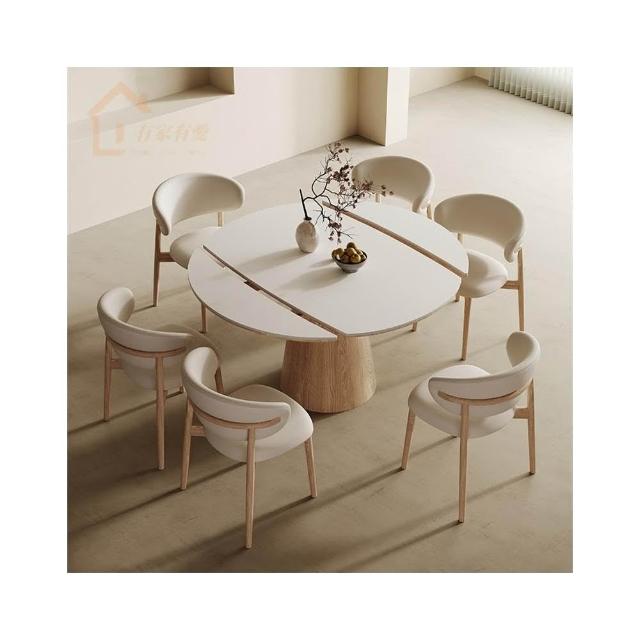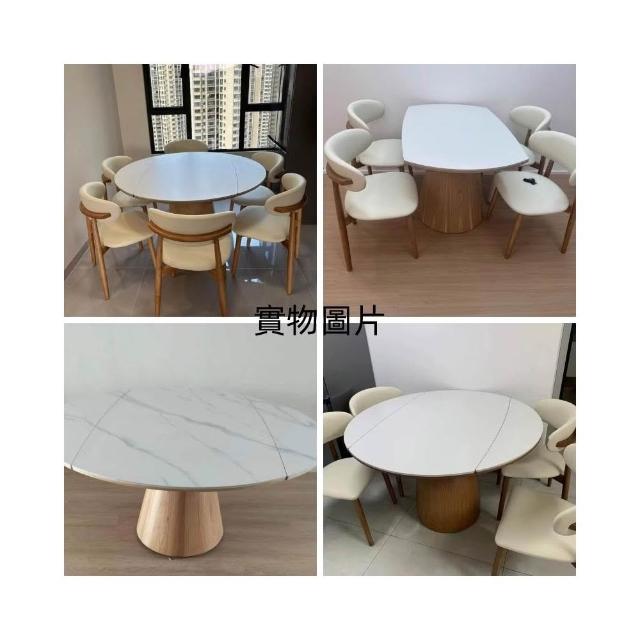 實木岩板方圓兩用可伸縮折疊餐桌家用小戶型餐桌可變圓桌飯桌