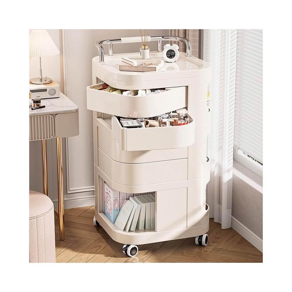 小推車置物架化妝品旋轉收納櫃多功能零食收納架可移動臥室床頭櫃